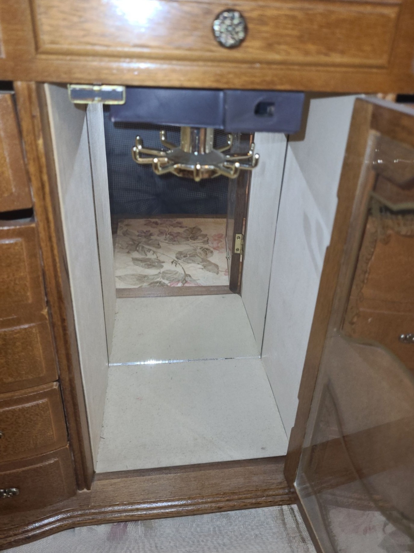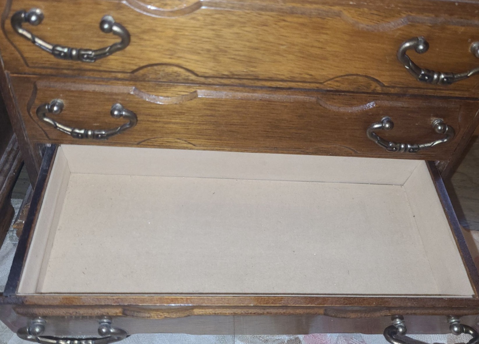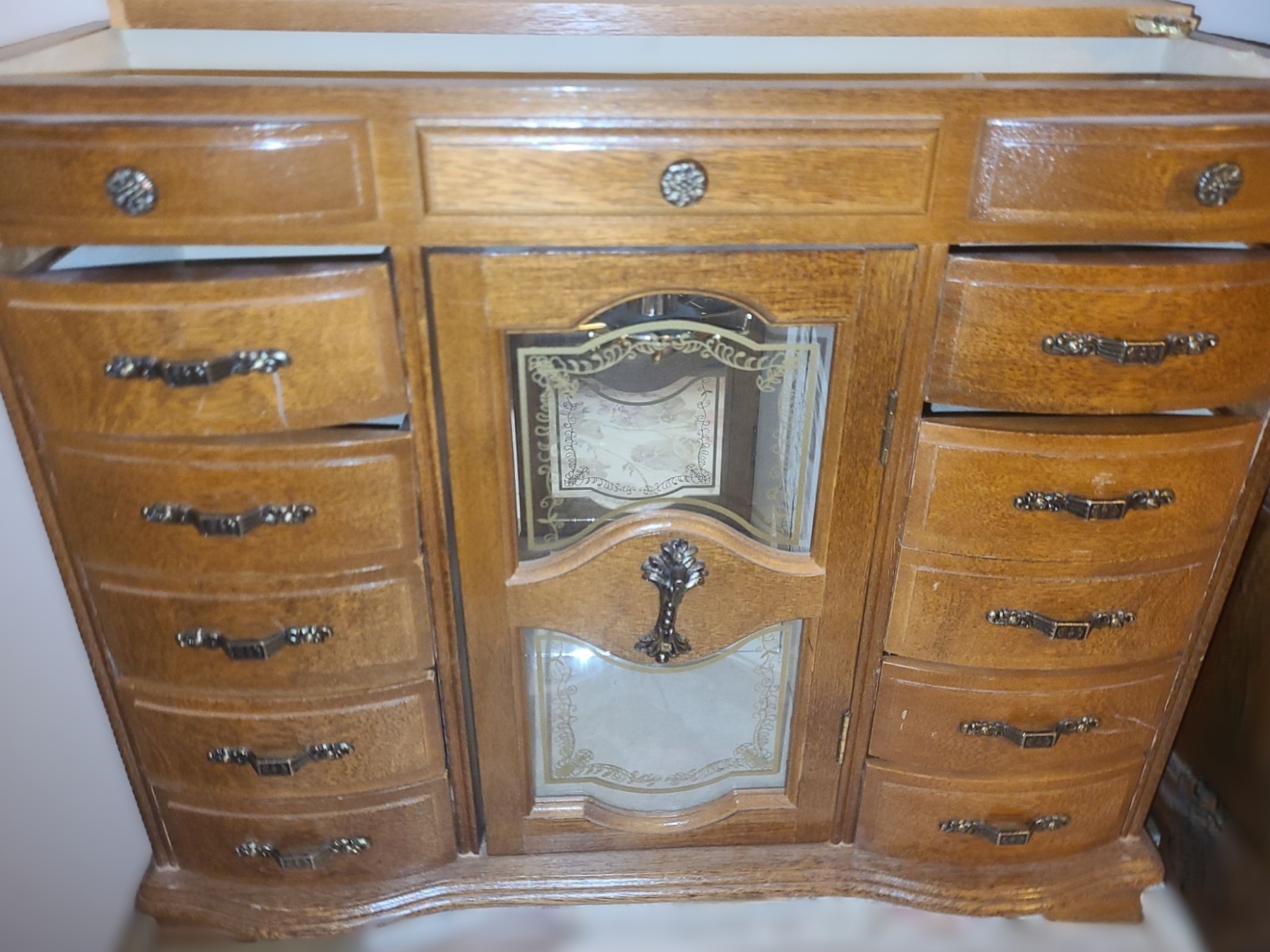 Jewelry Boxes: 17.5 W, 6 D, 14.5 T (Lid Missing) and 11.5 W, 6 D, 20 T, Roses Print 26 X 30