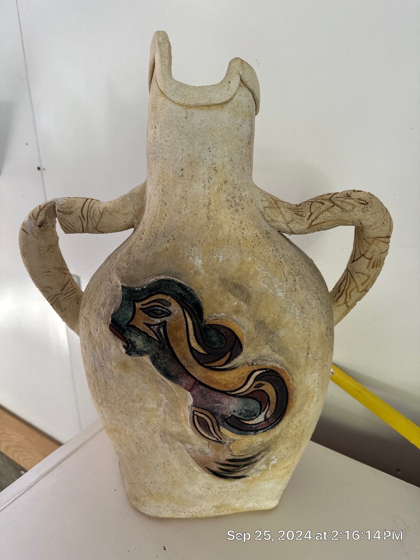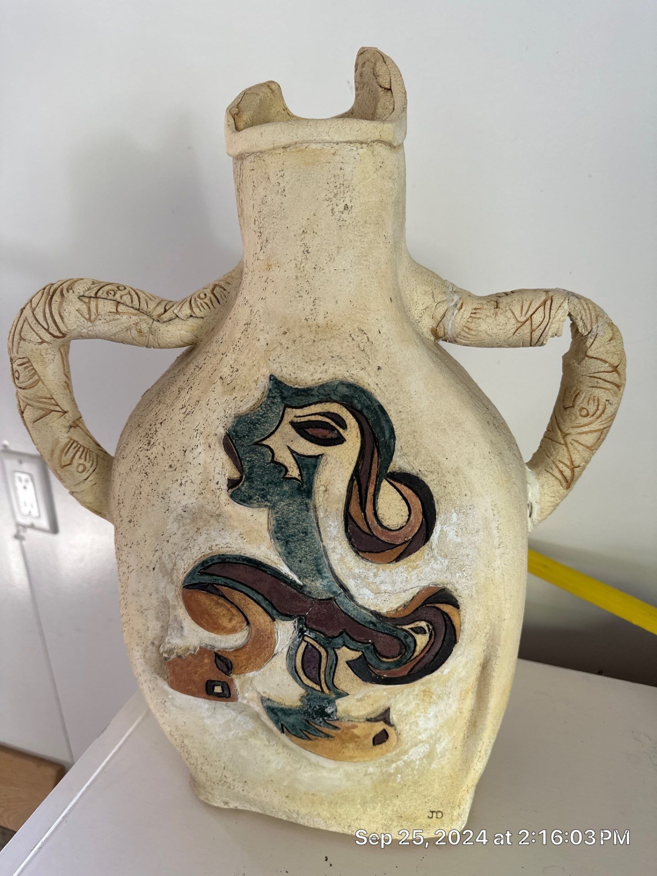 Joanna Drummond Urn Pottery Original, Damage On One Handle -- 15W, 7D, 21T