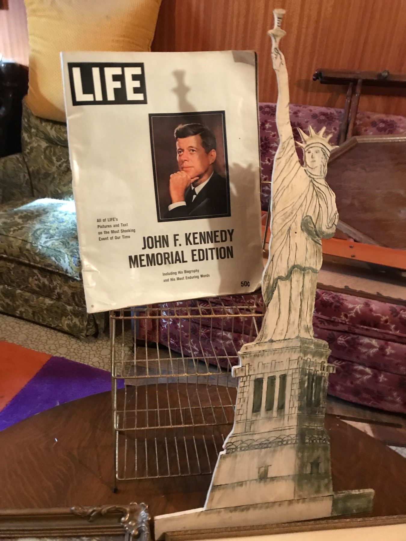 John F. Kennedy Life Magazine, Assorted Wall Art (Statue of Liberty), Metal Rack