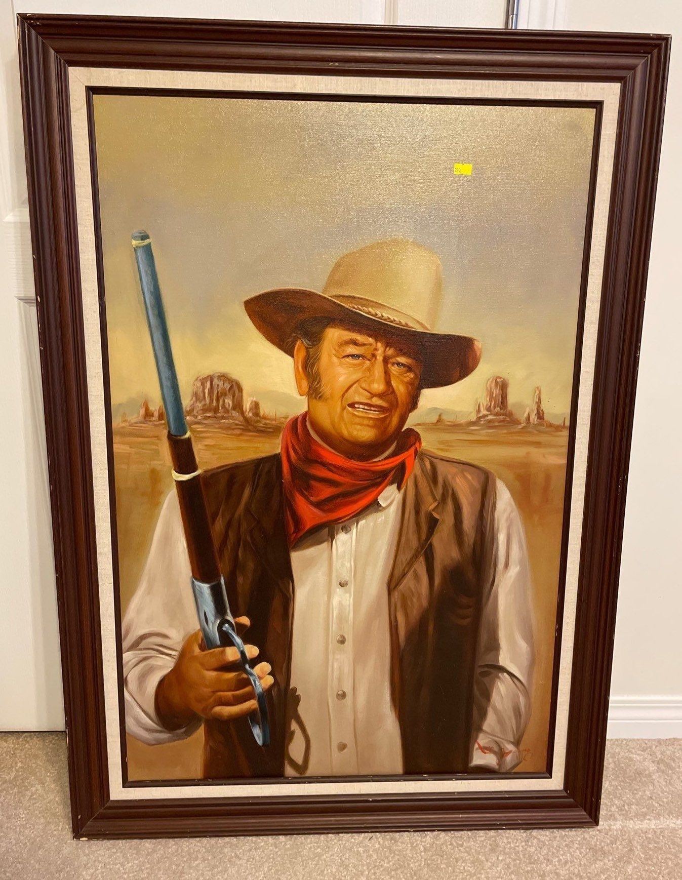 John Wayne Portrait In Wooden Frame By Lee Young 30Lx42H