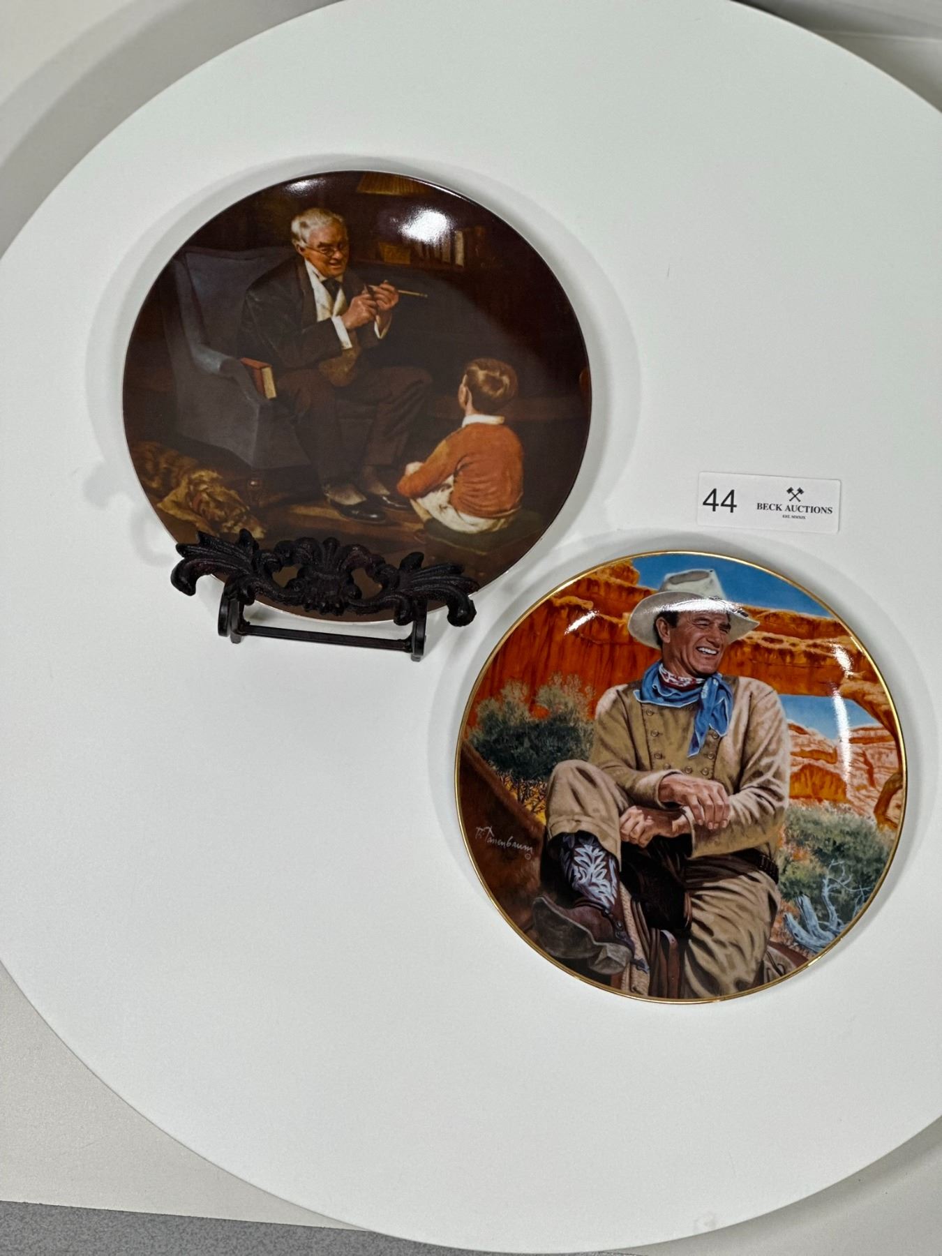 John Wayne and Norman Rockwell Decorative Plates with Plate Stand