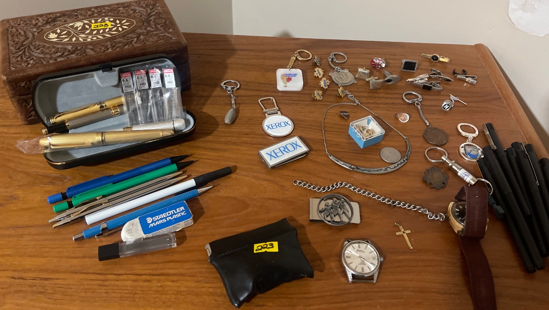 Junk Drawer Gems - Souvenir Key Chains Fountain Pens Hand Carved Jewelery Box & More