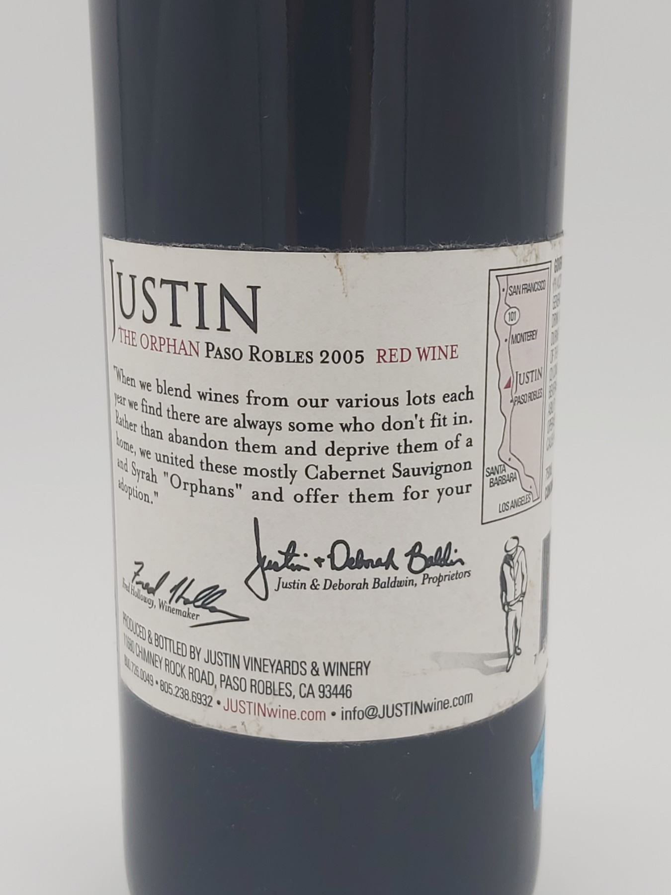 Justin Vineyards and Winery The Orphan Paso Robles 2005 Vintage 14.5%