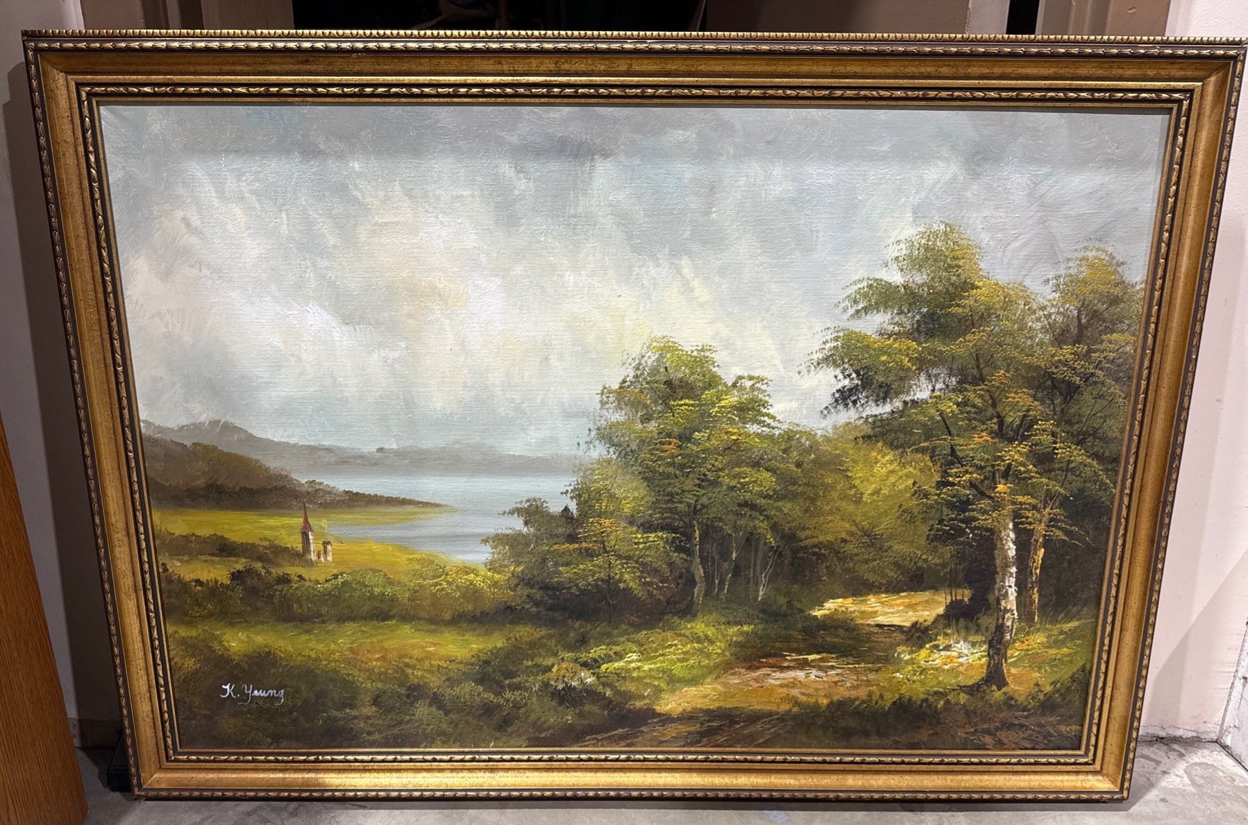 K.Yeung's Oil Painting Picturesque Mountain Landscape-Oil On Canvas Romanticism 39x29"t