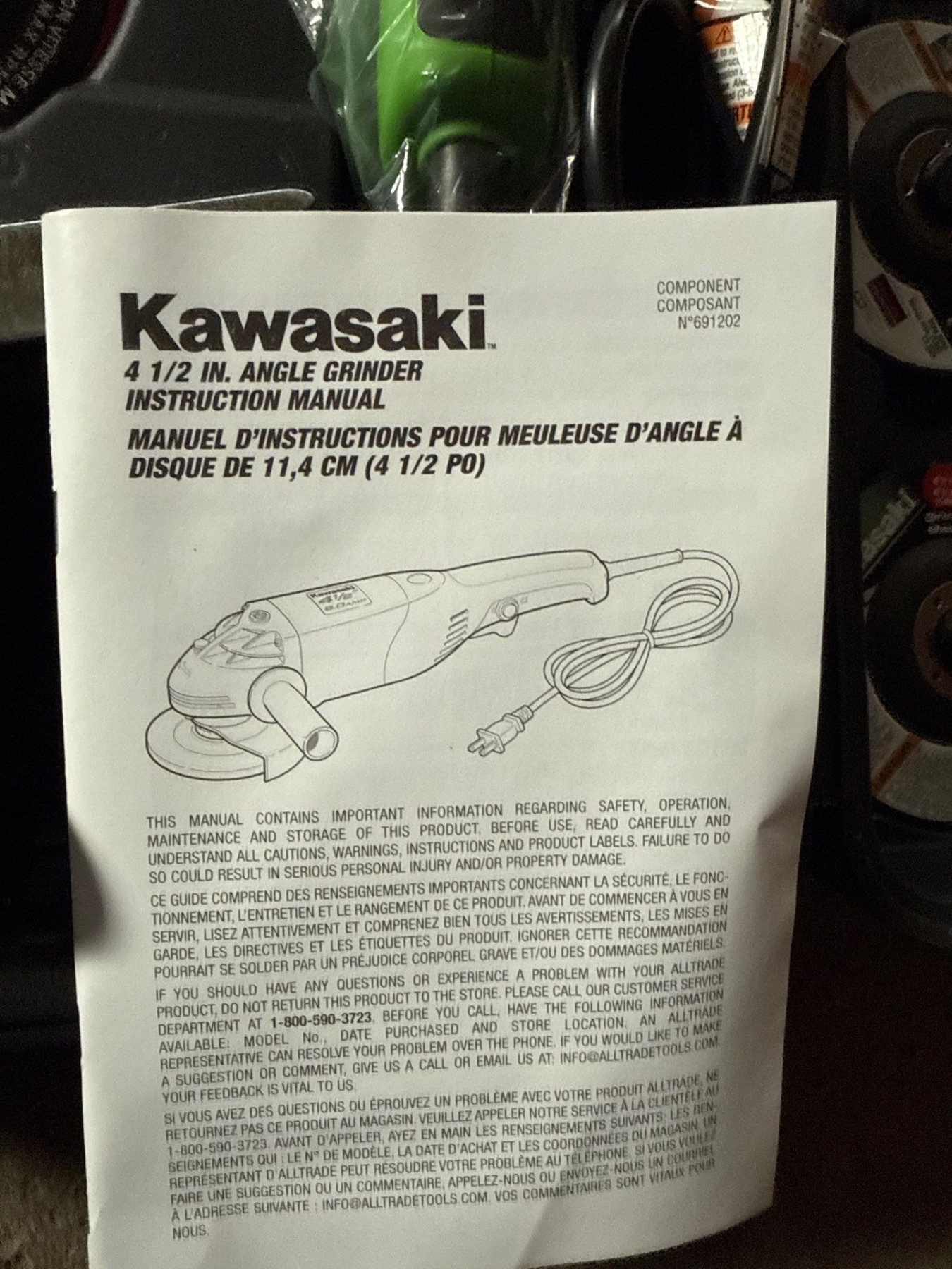 KAWASAKI 3.5 Angle Grinder NEW In Case w/ Accessories, 691202