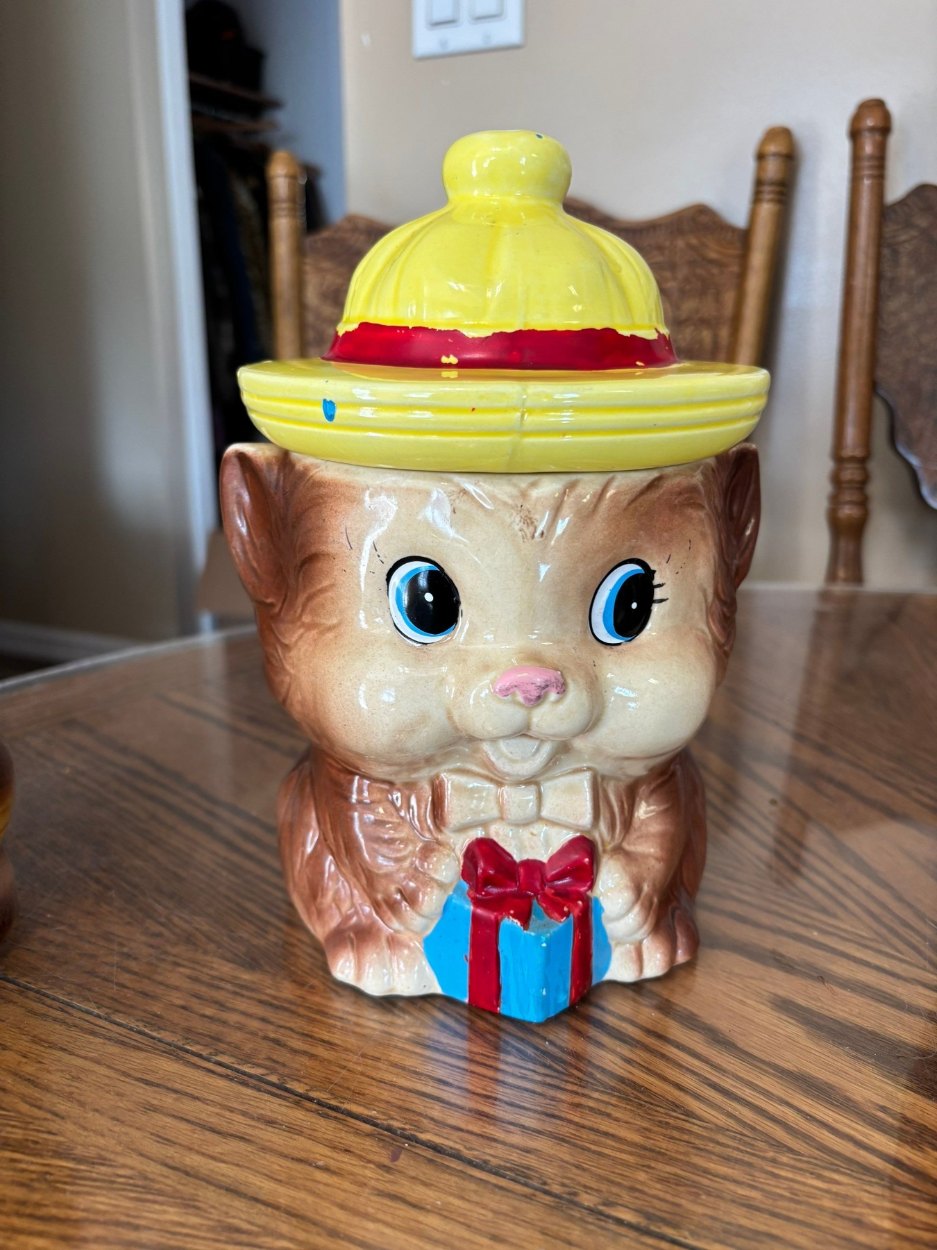 KITTY CAT COOKIE JAR VINTAGE MADE IN JAPAN 9" HIGH 6" WIDE