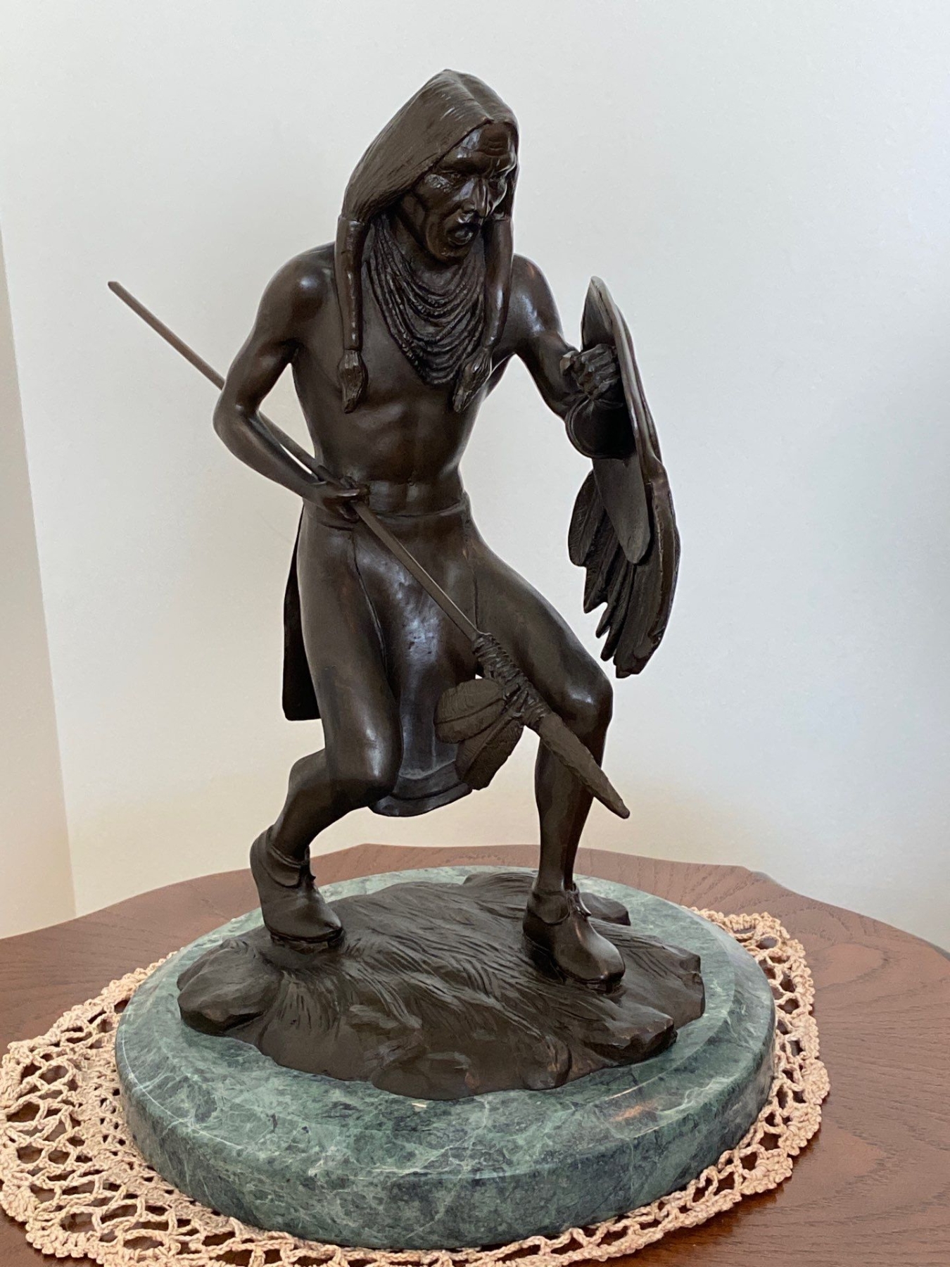 Karl Auba Bronze 13T First Nations Warrior on Marble