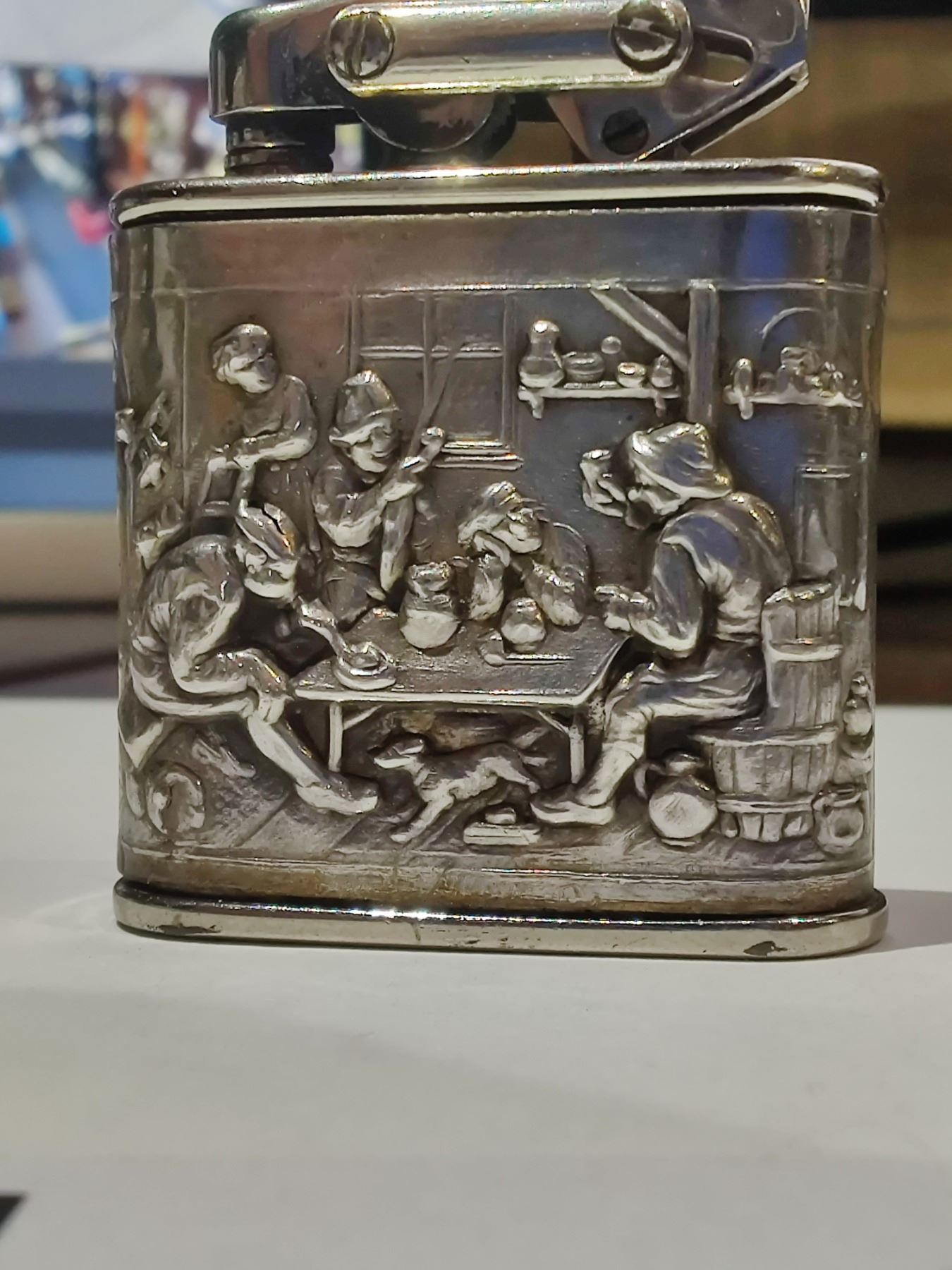 Karl Wieden repousse lighter with .835 silver sleeve.