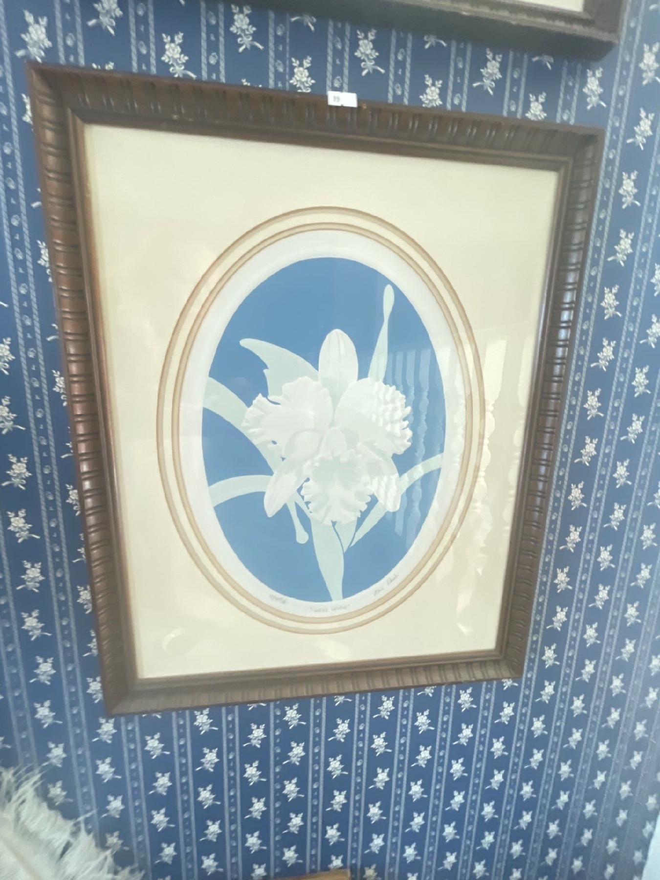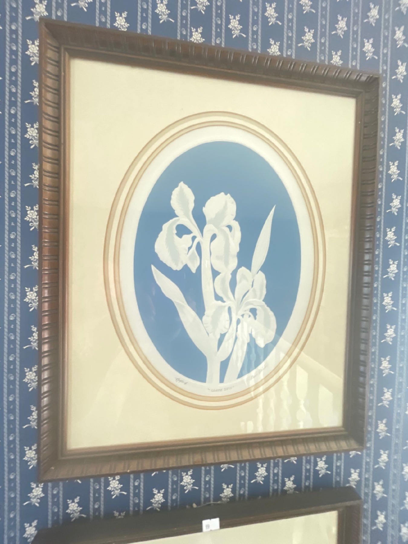 Ken Rich Blue & White Iris & Orchid Floral 7/500 18x21