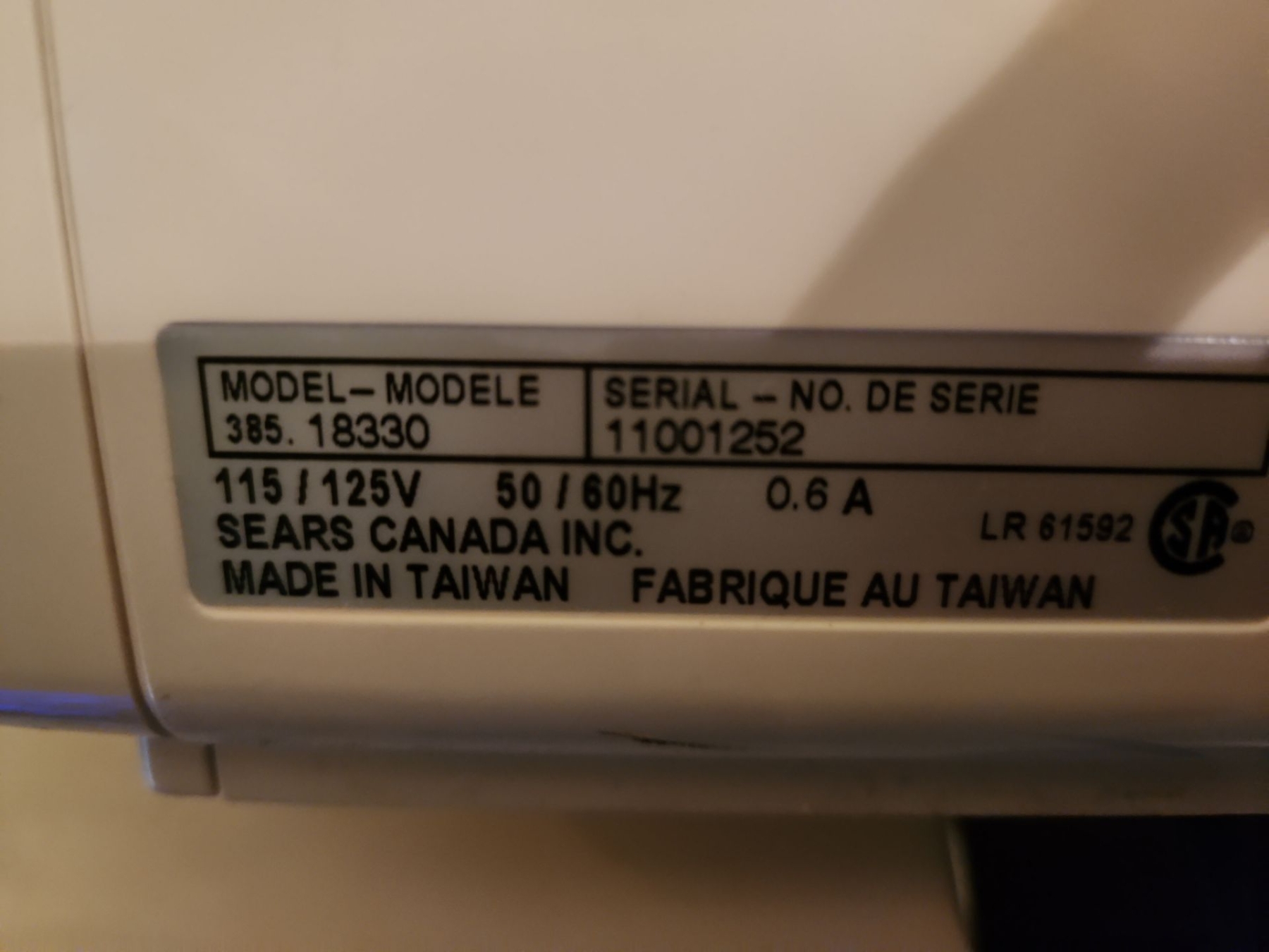 Kenmore Model 385.18330 Sewing Machine