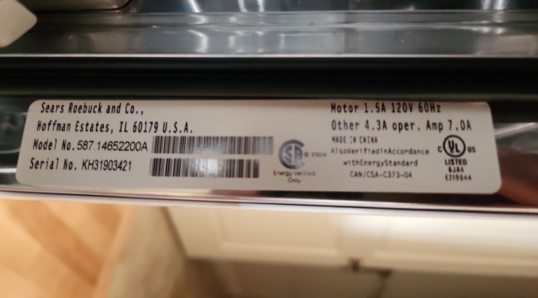 Kenmore White Free Standing Dishwasher 18 W, 25.5 D, 36 T Model 587.14652200A (New)