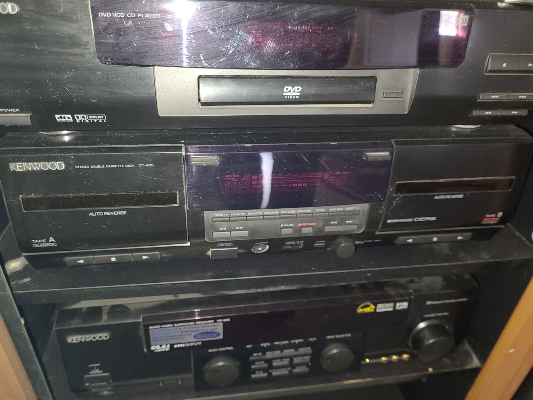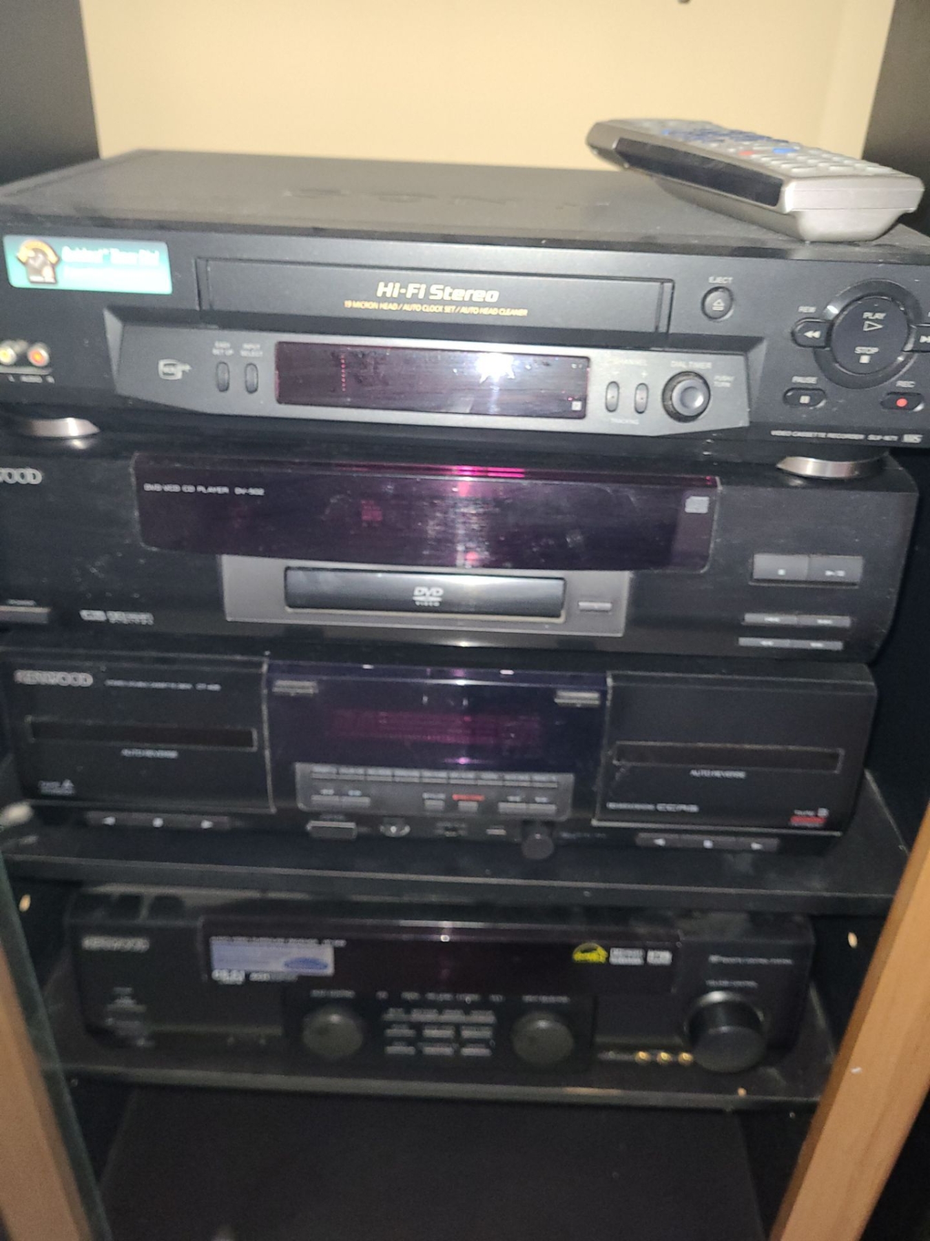 Kenwood Stereo/ Cab 23 w, 42 h, 17 d, DV-502 , CT-405 & VR-509 & Sony VCR Model SLV-N71, TV/ VCR