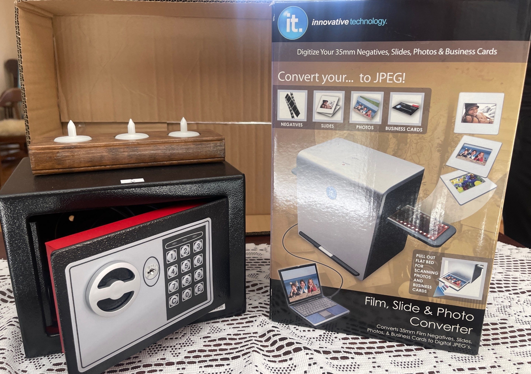 Keyed Entry Safe 9x7x7 w/ Innovative Technology Film/Slide/Photo Converter & More