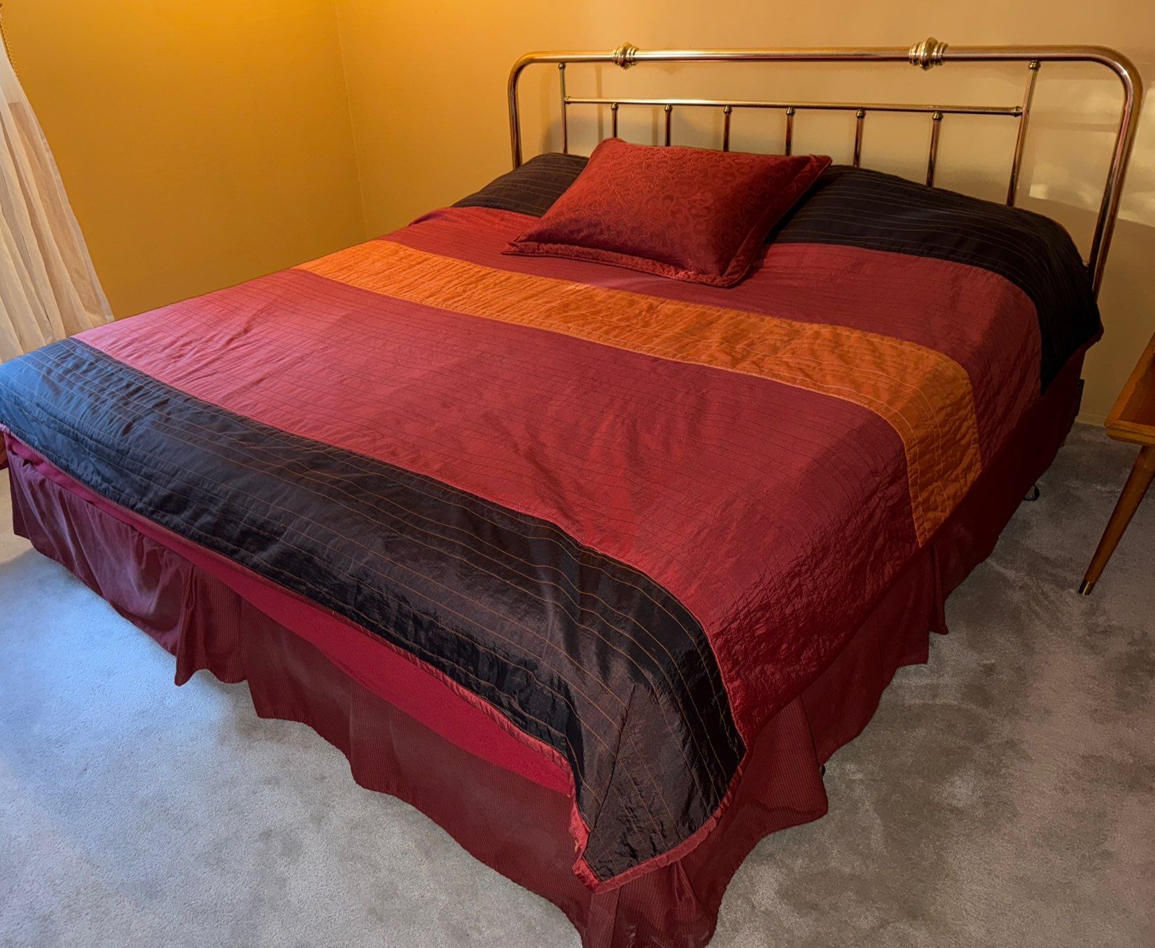 King Size Brass Bed w/ Frame, Mattress & Box Spring