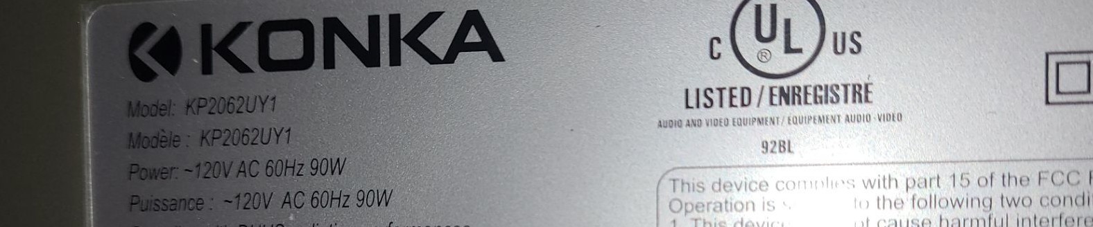 Konka TV Set Model KP2062UY1