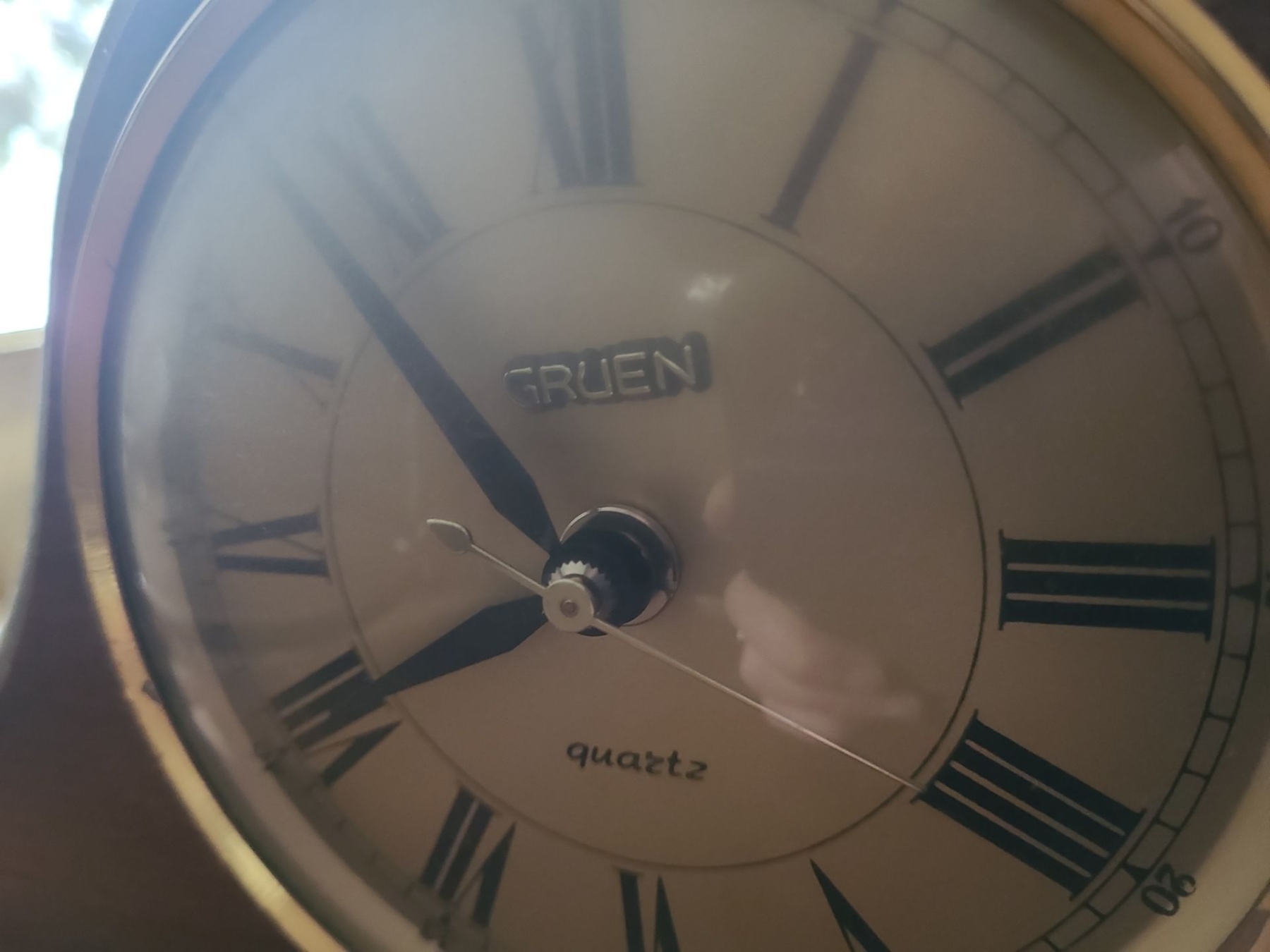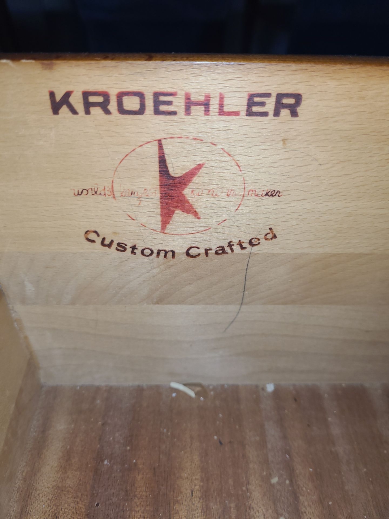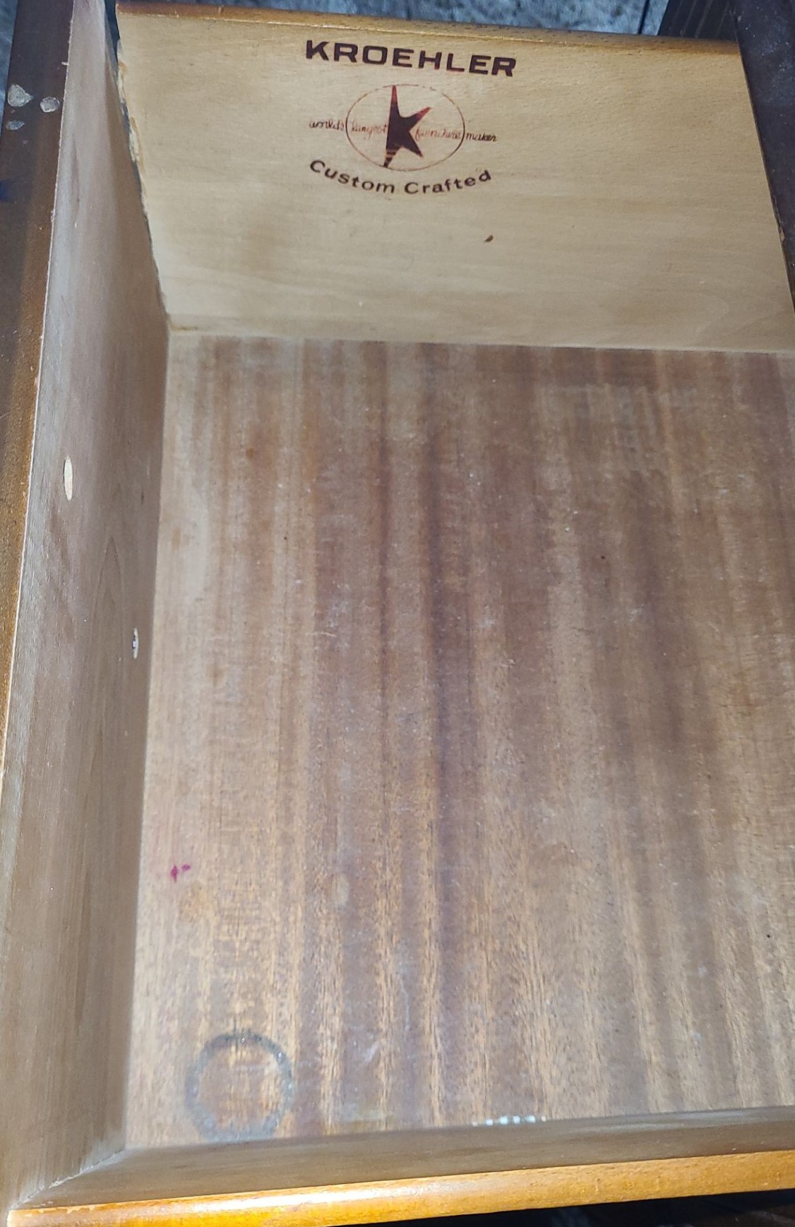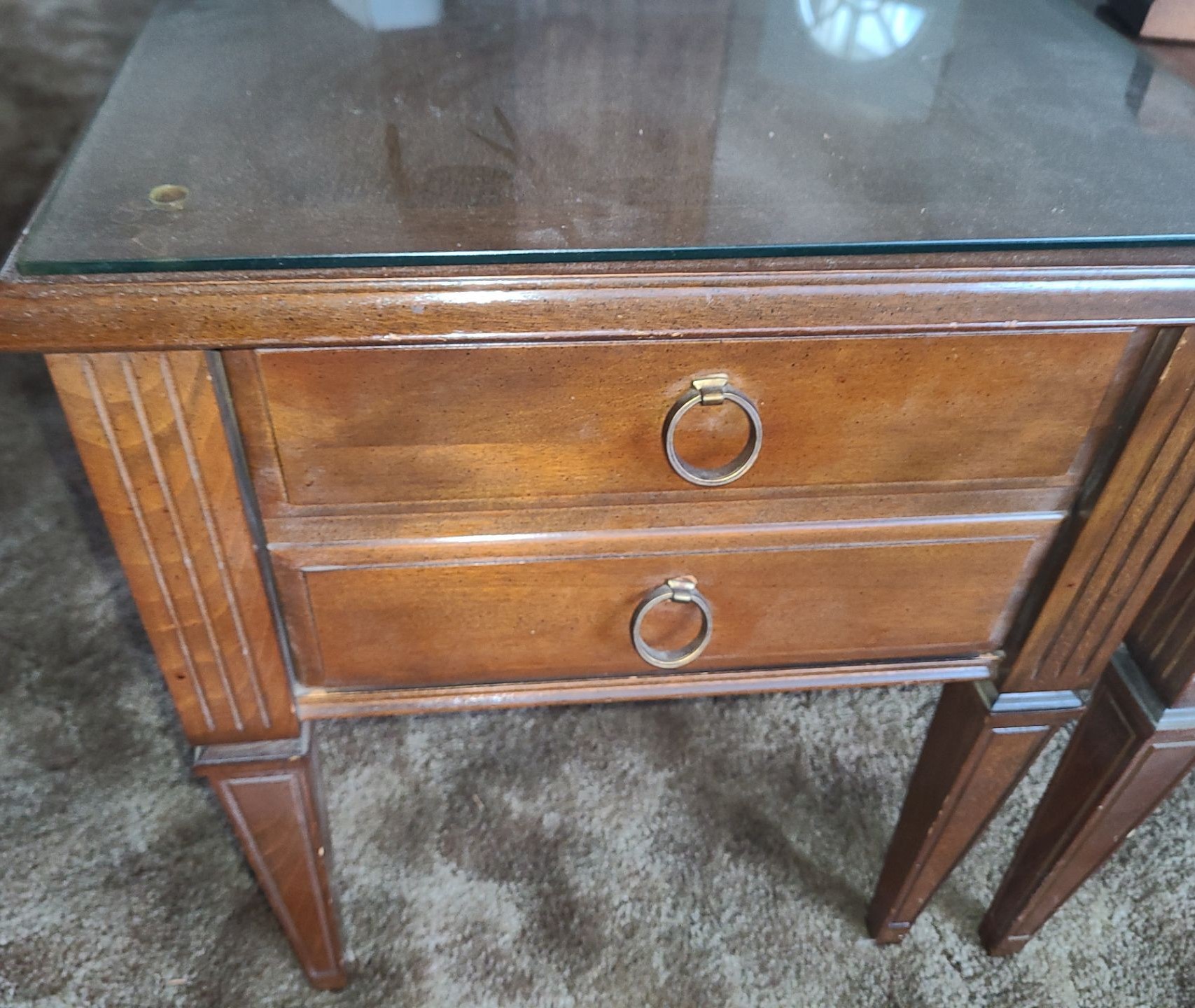 Kroehler Custom Crafted Side Table with Drawer 19 W, 25 D, 23 T (X2), Gruen Clock, Mirror 25 X 30