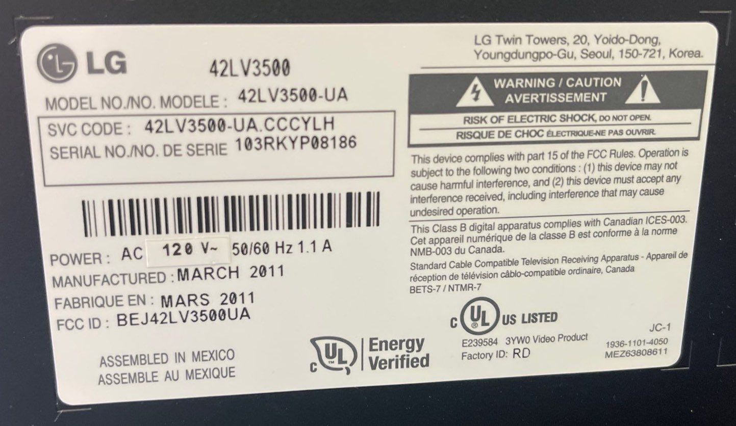 LG 42" Flat Screen Television Mo.42LV3500