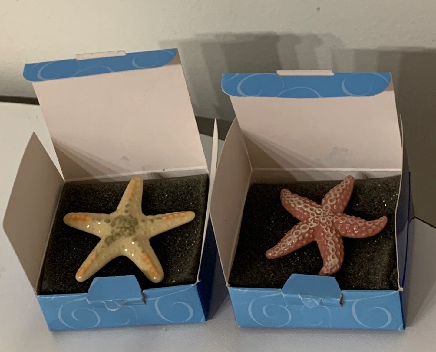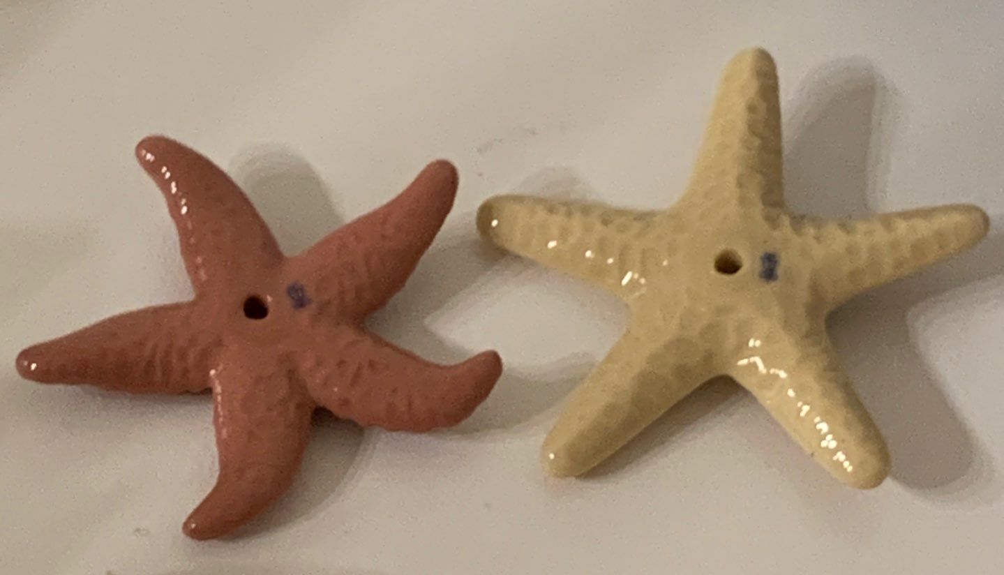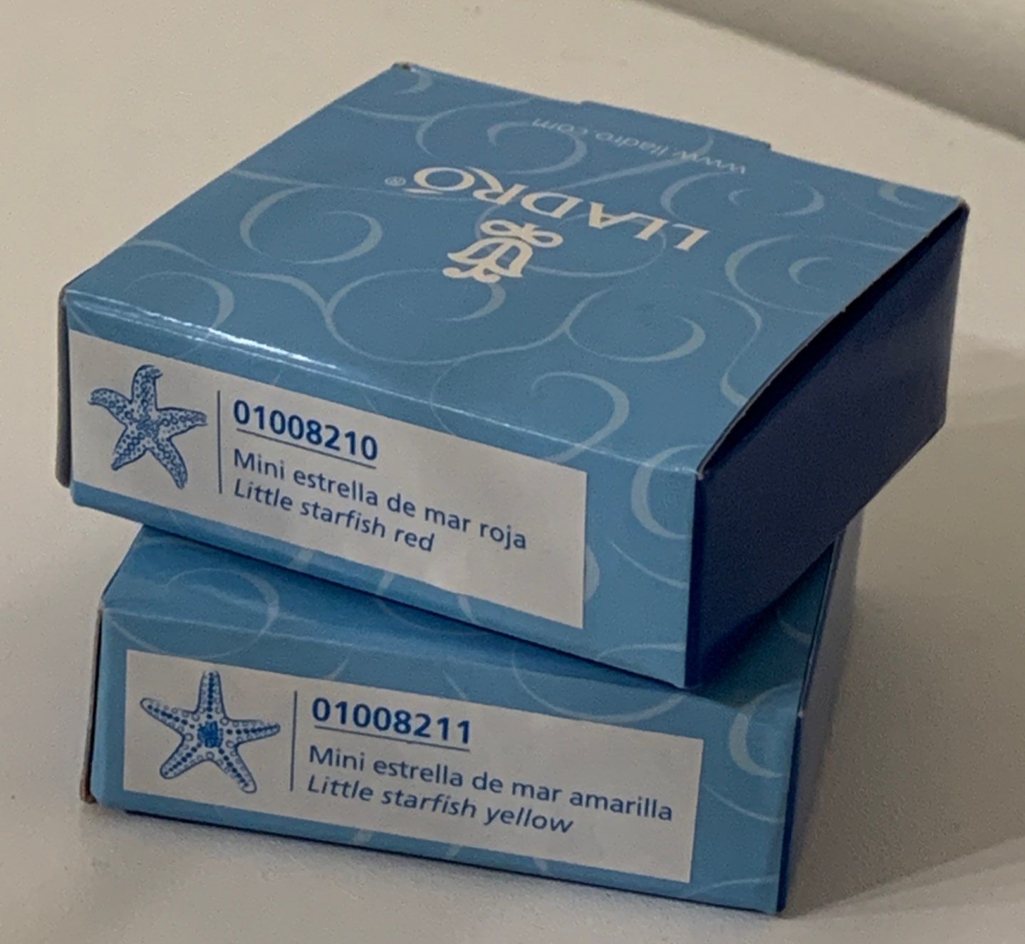 LLADRO Pair of Porcelain 'Little Starfishes' Yellow & Red - Largest is 2L