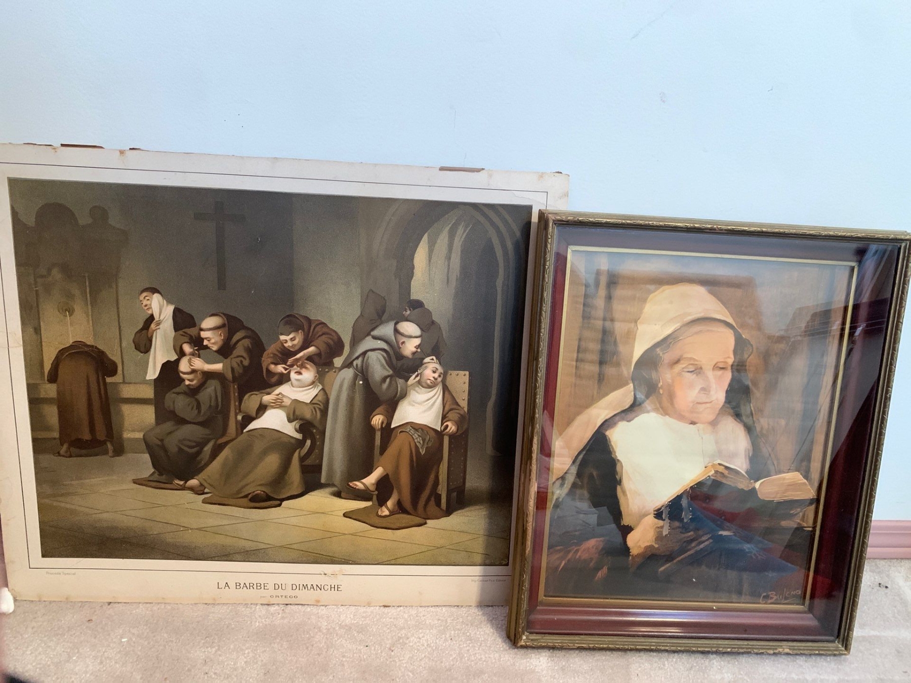 La Barbe Du Dimanche Par Ortego Monk Art 16x12 w/ C. Bulcino Nun Art