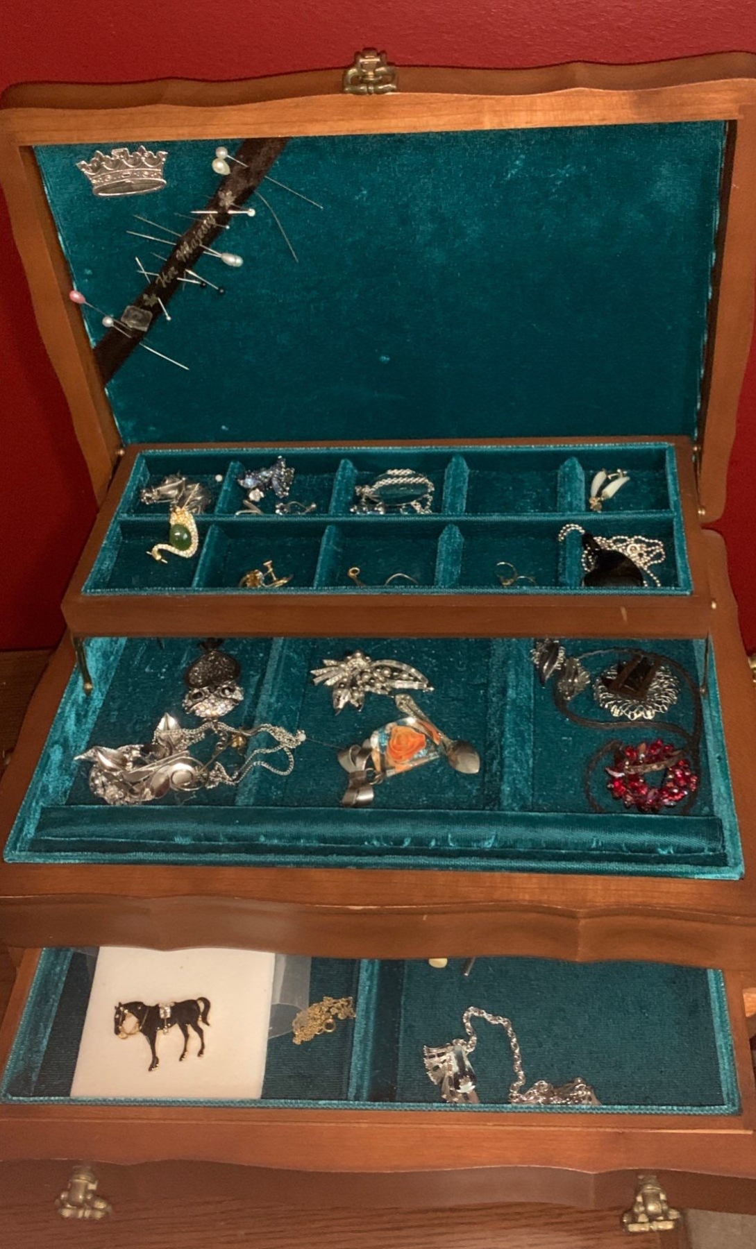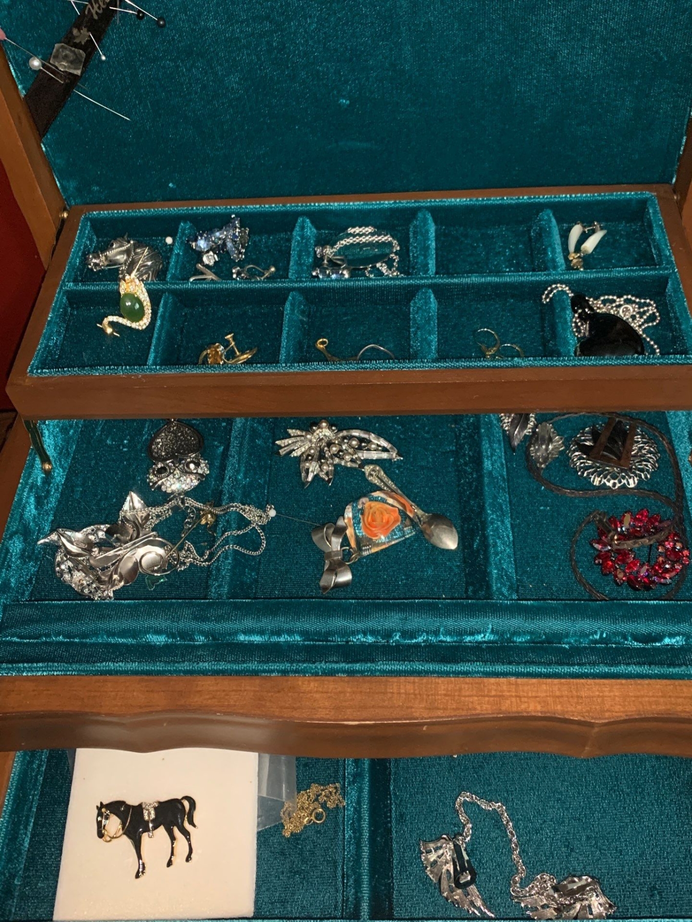 Ladies Costume Jewellery w/ Antique Jewellery Chest 14L