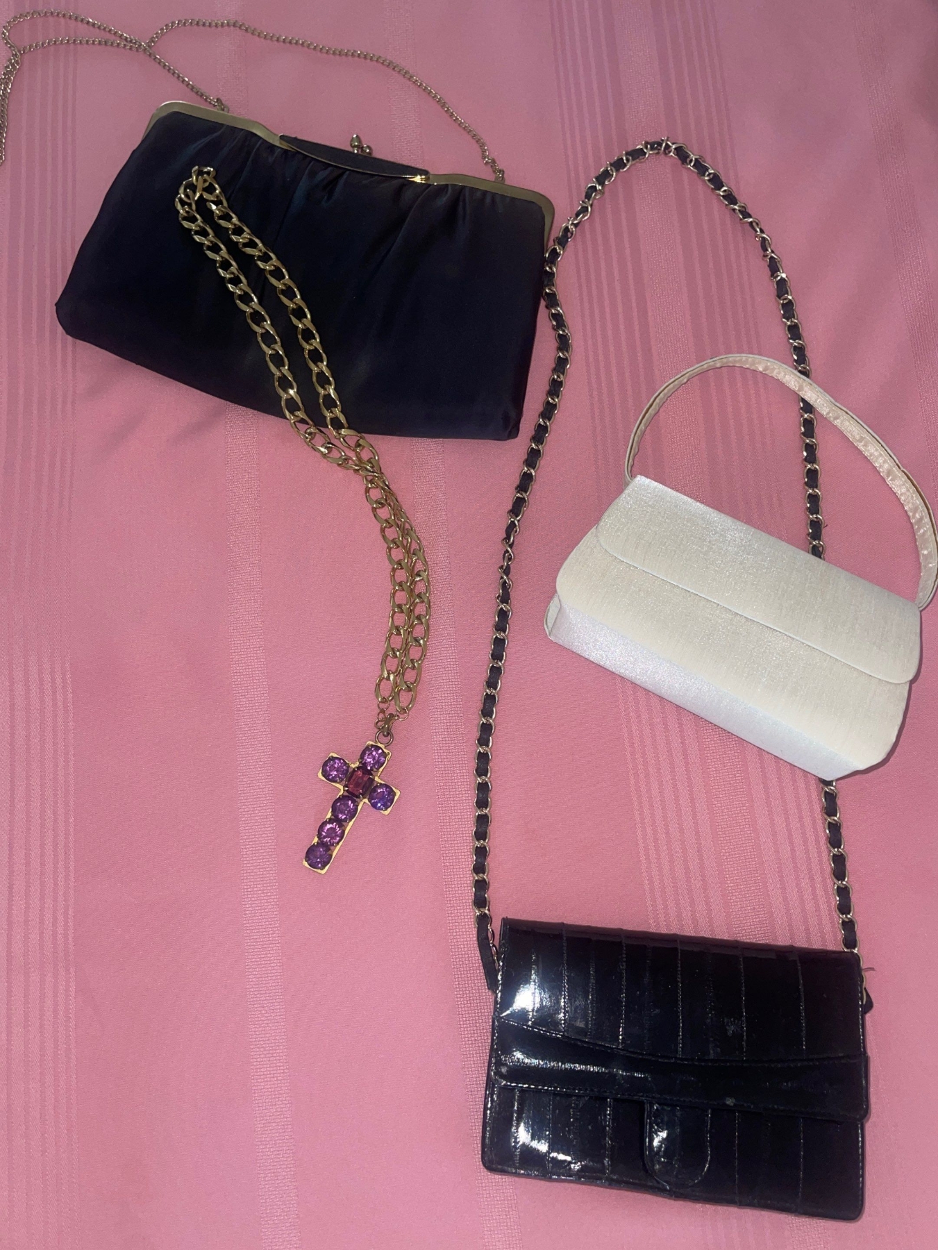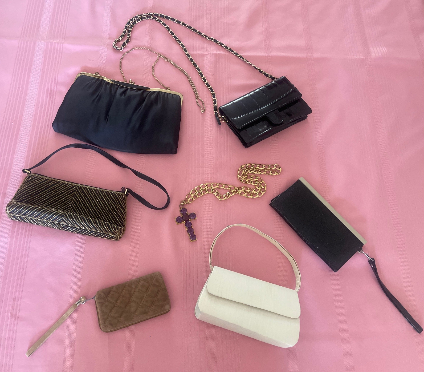 Ladies Fashion Accessories - Vintage Clutch Collection w/ Large Gold Tone Cross Necklace