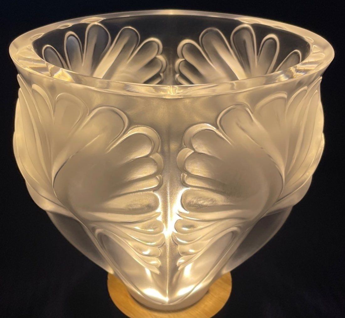 Lalique Crystal Palm Frond Vase 7x8.5