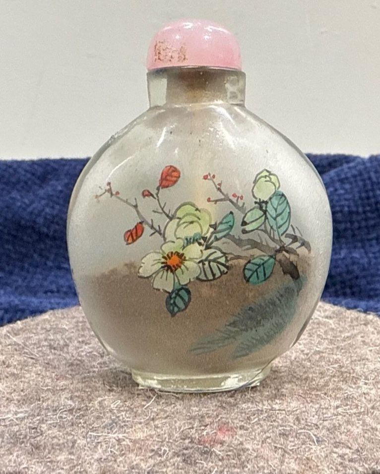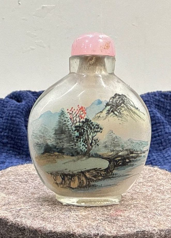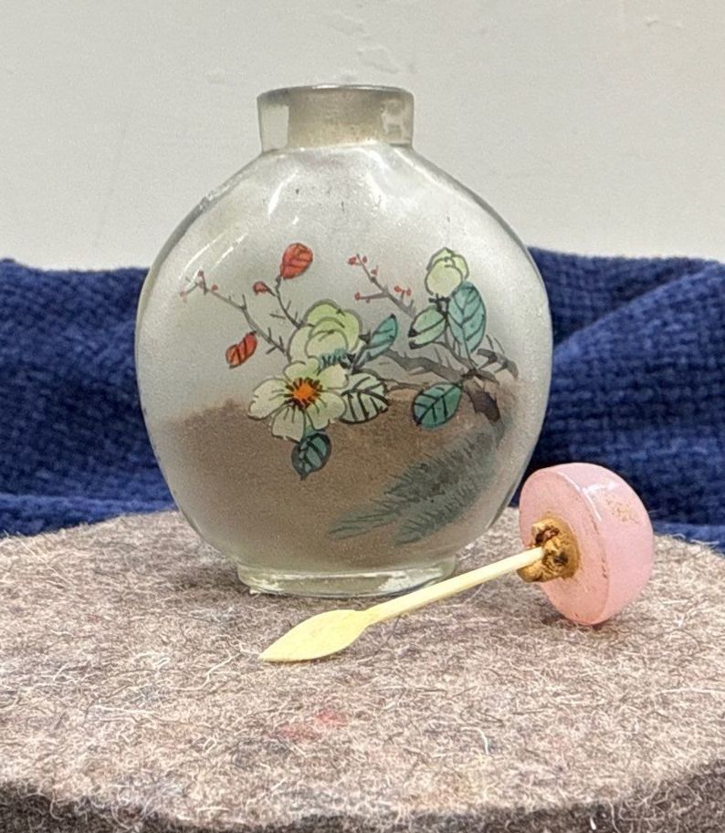 Landscape/Scene/Floral Snuff Bottle with Spoon 2.5H