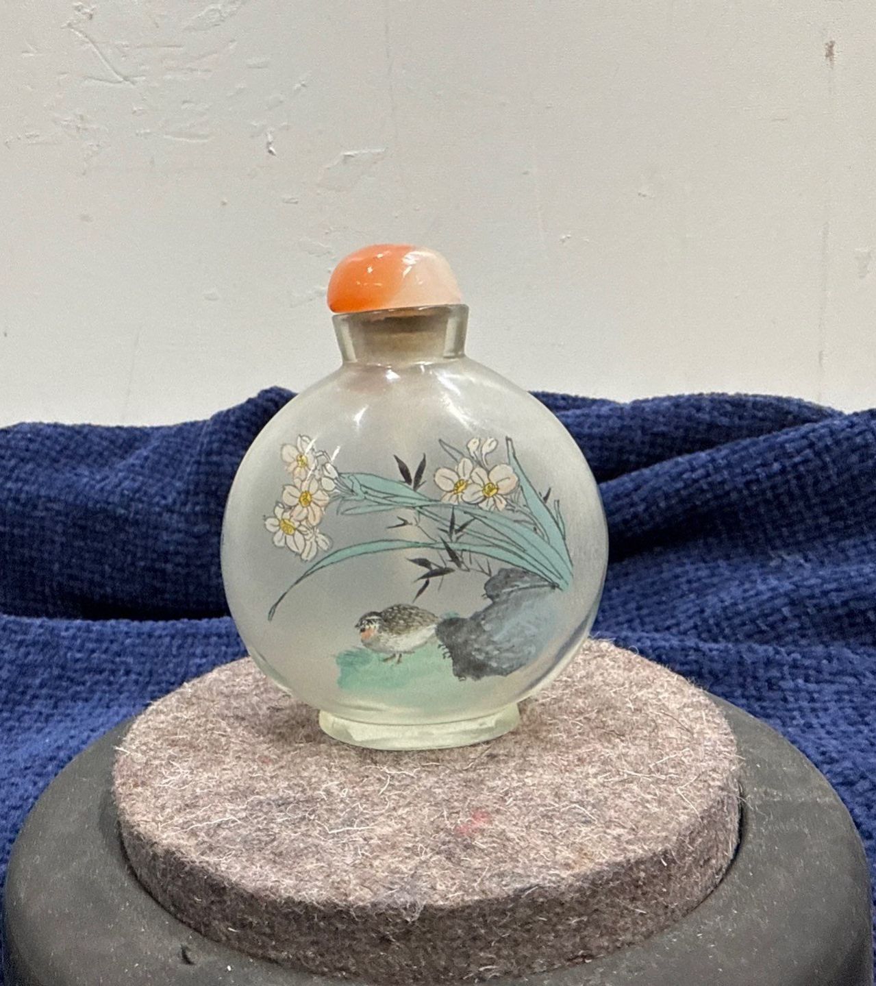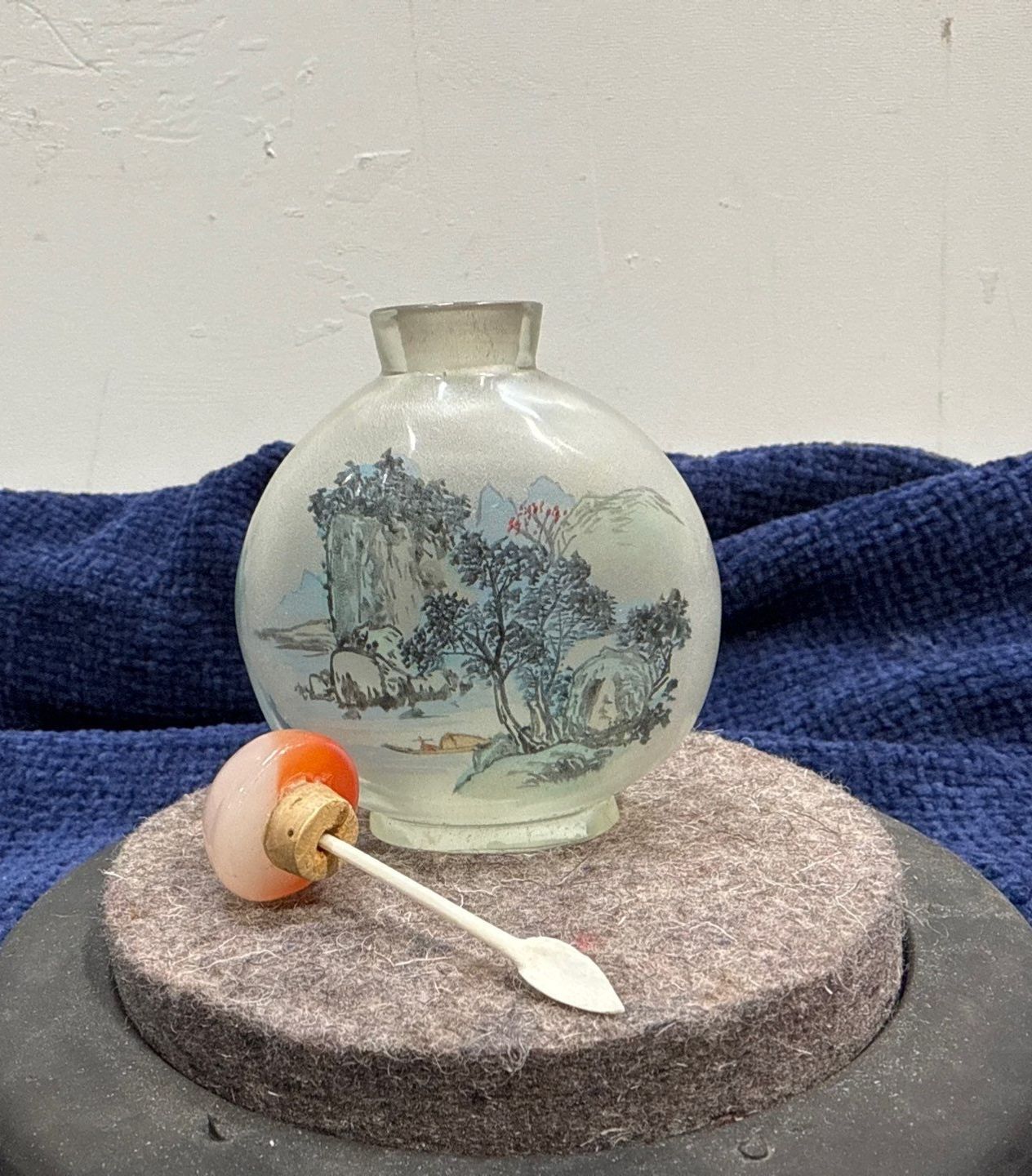 Landscape and Bird Snuff Bottle with Spoon 4H