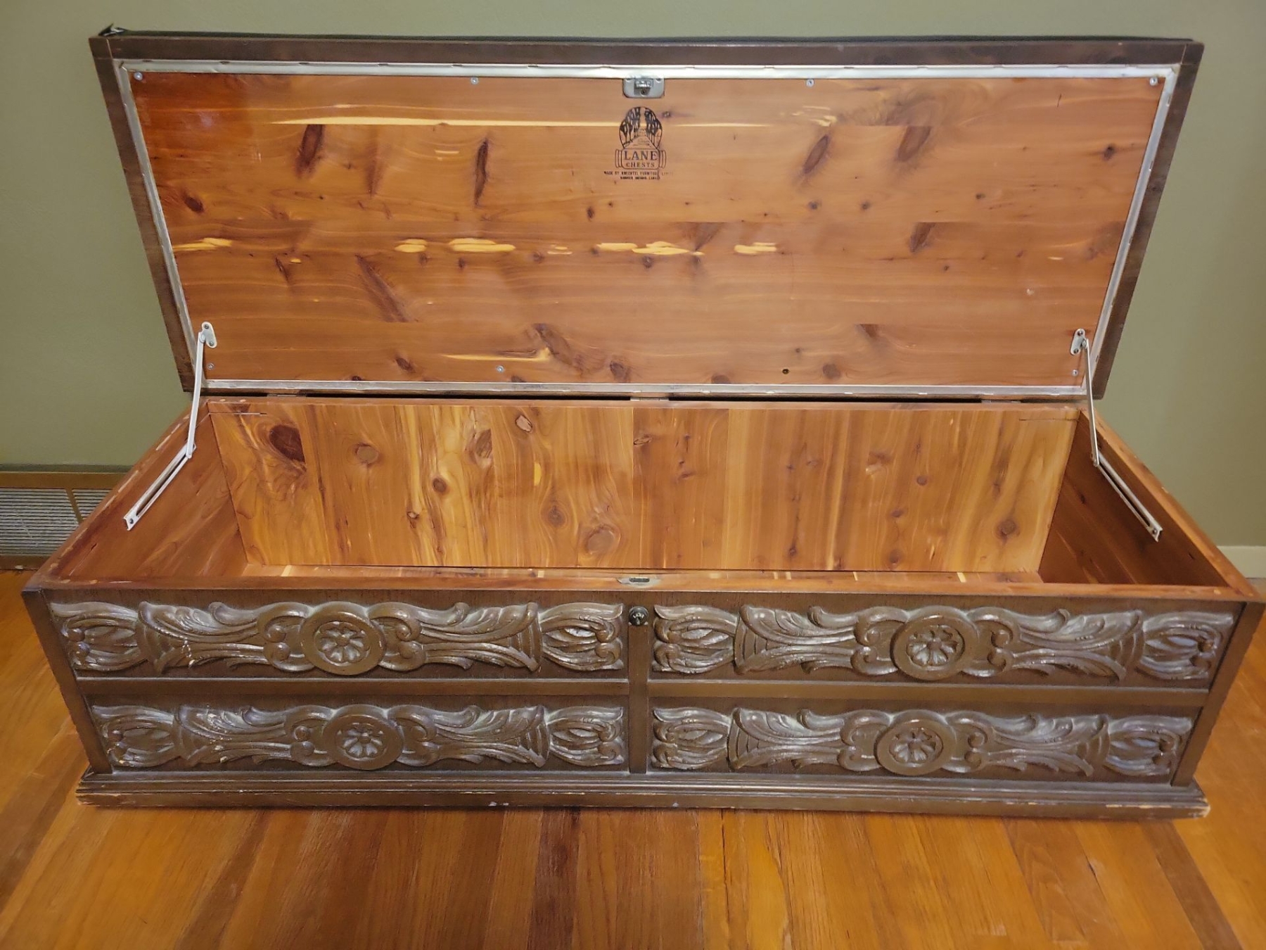 Lane Altavista Carved Cedar Chest w/ Upholstered Top Pad on Casters 45L