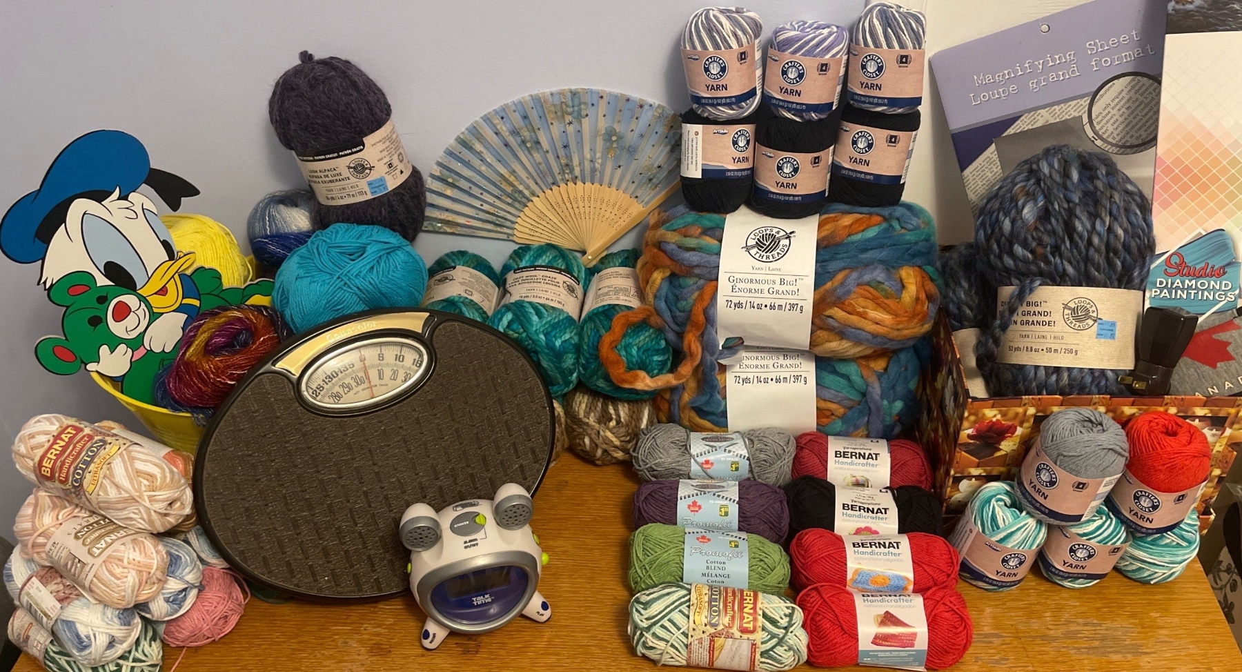 Large Assortment Of Sewing Crafting And Donuld Duck >>> BERNAT YARN WOOL THGREAD