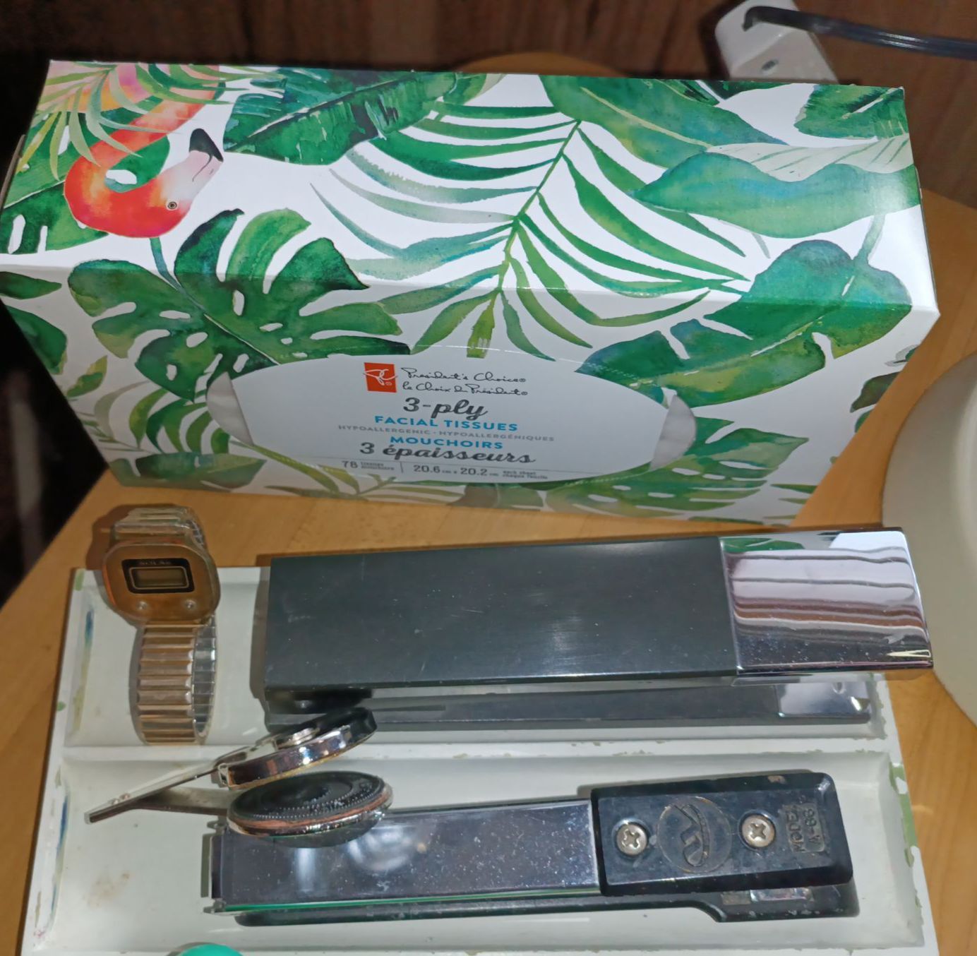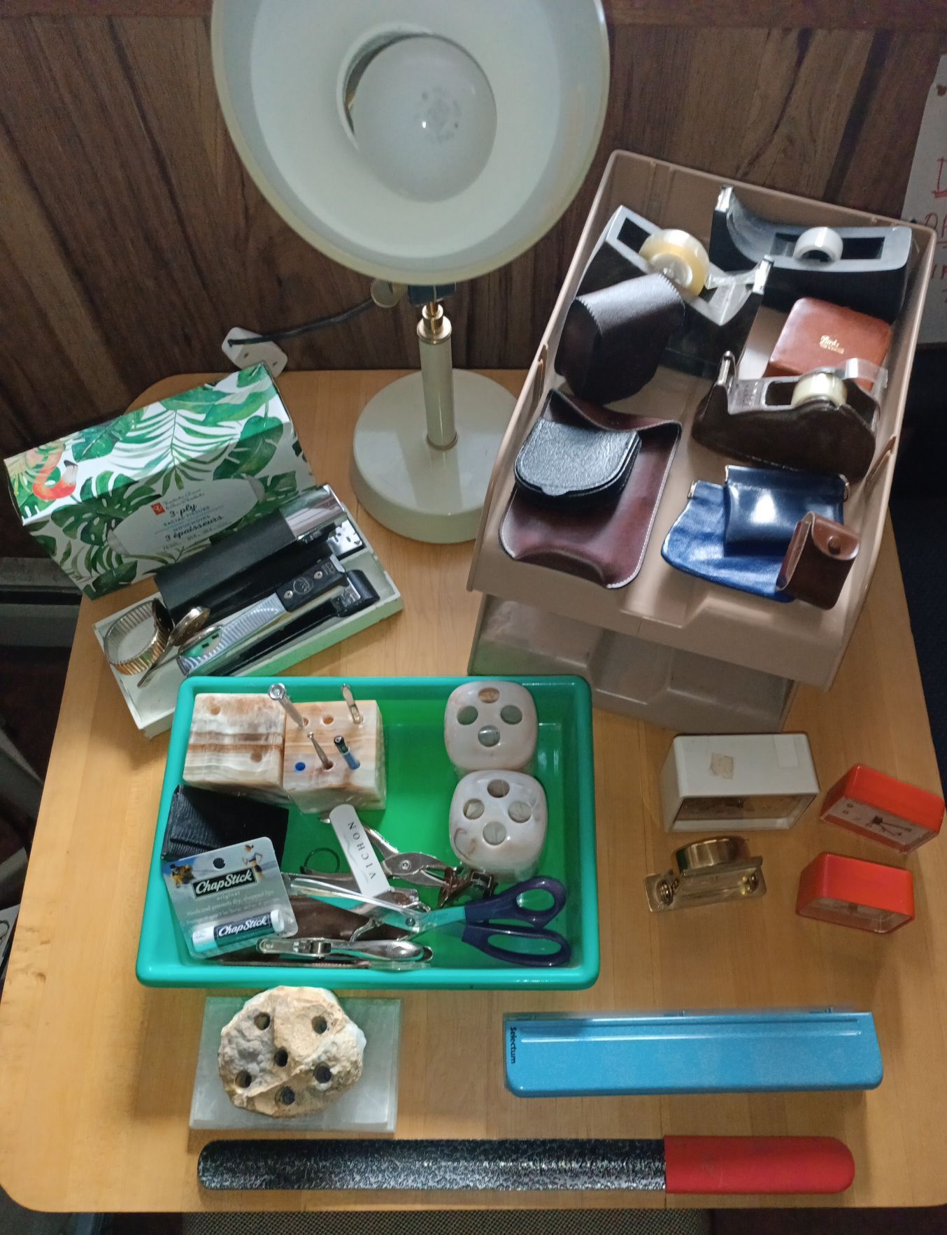Large Assortment of Vintage Stationary Supplies Staplers, Hole Punch, Tape Holder & More