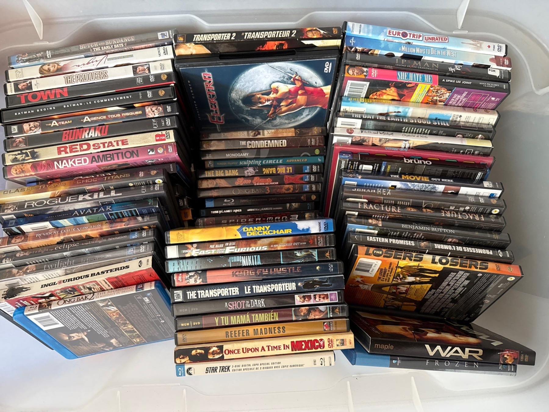 Large Bin of DVD/Bluray Popular Films - Electra, War, Bourne, Bad Teacher, Inception, Much More