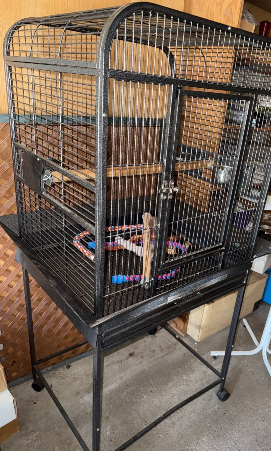 Large Bird Cage w/ Built In Stand On Casters 21x27x61