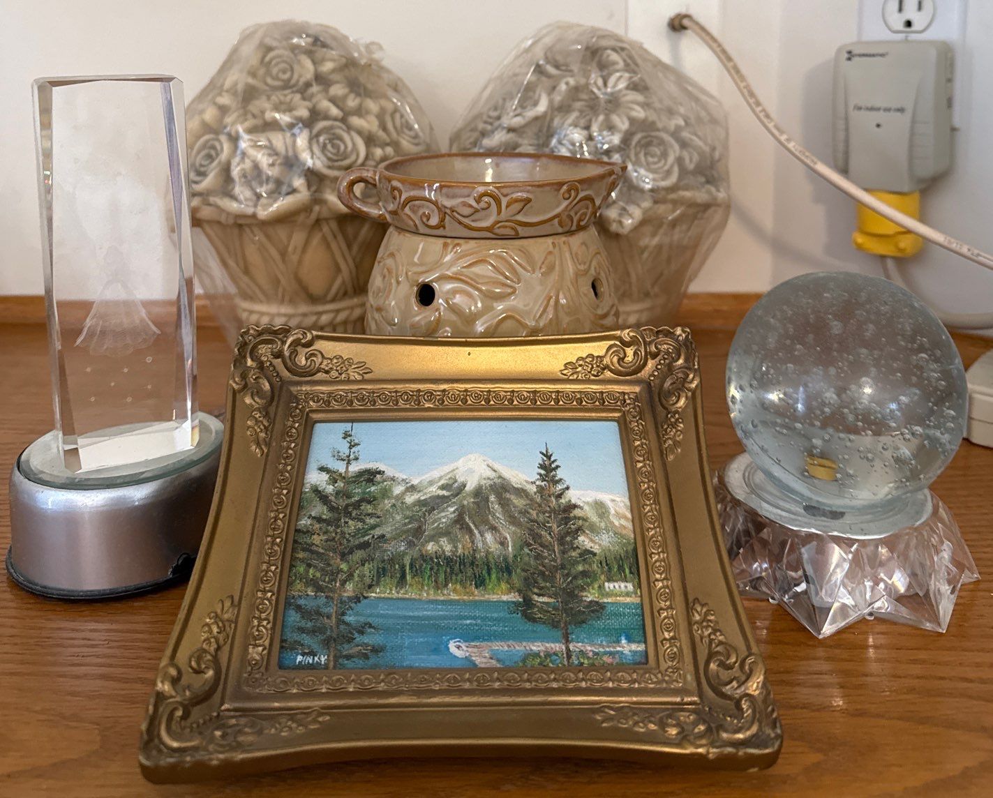 Large Bouquet Candles 8T Vintage Mountain Scape Art Crystal Ball & More
