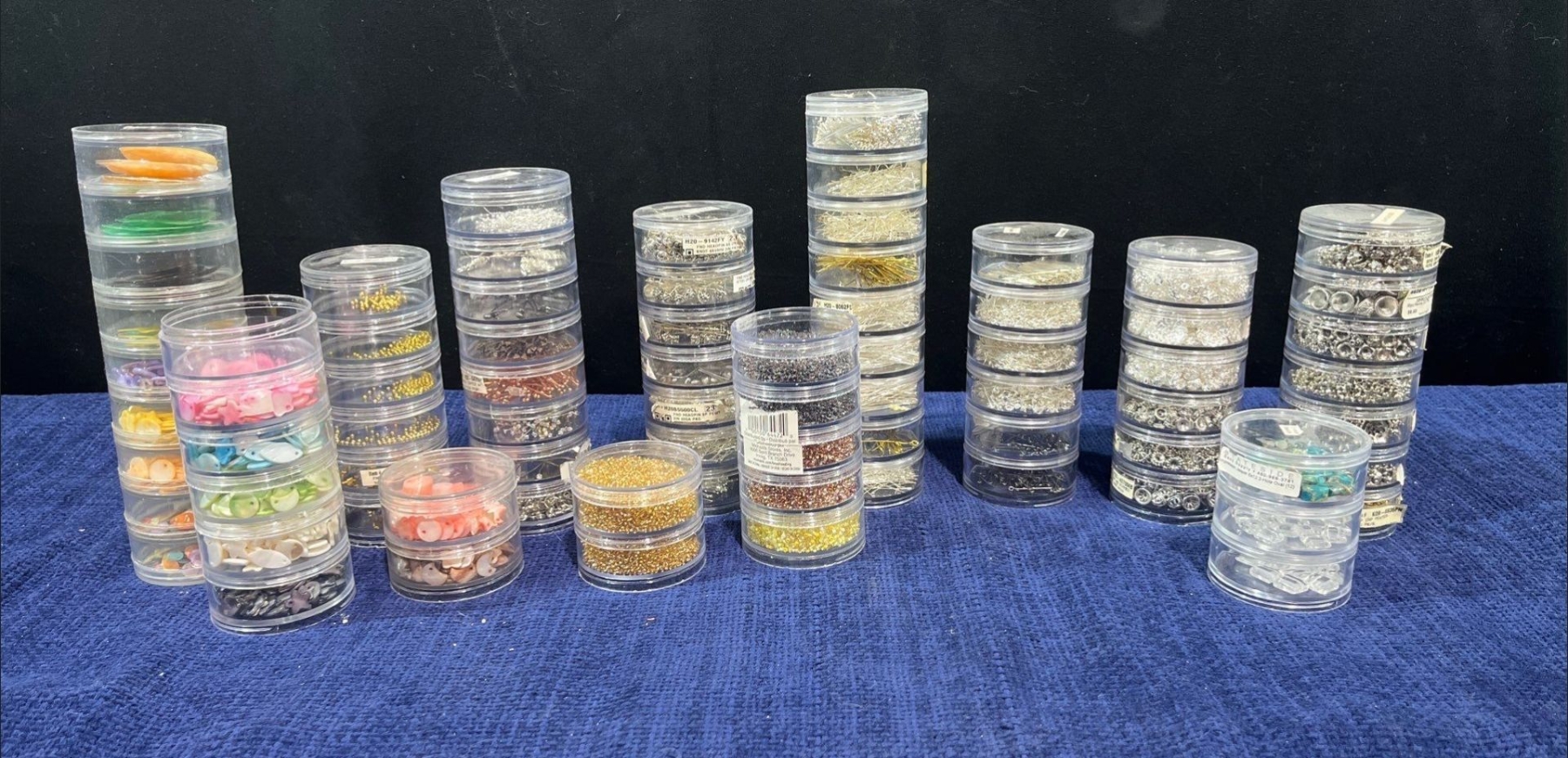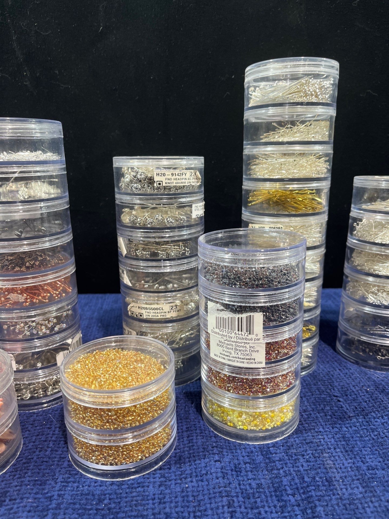 Large Collection of Beads/Pins for Jewelry Making, Container Diameter is 2.75