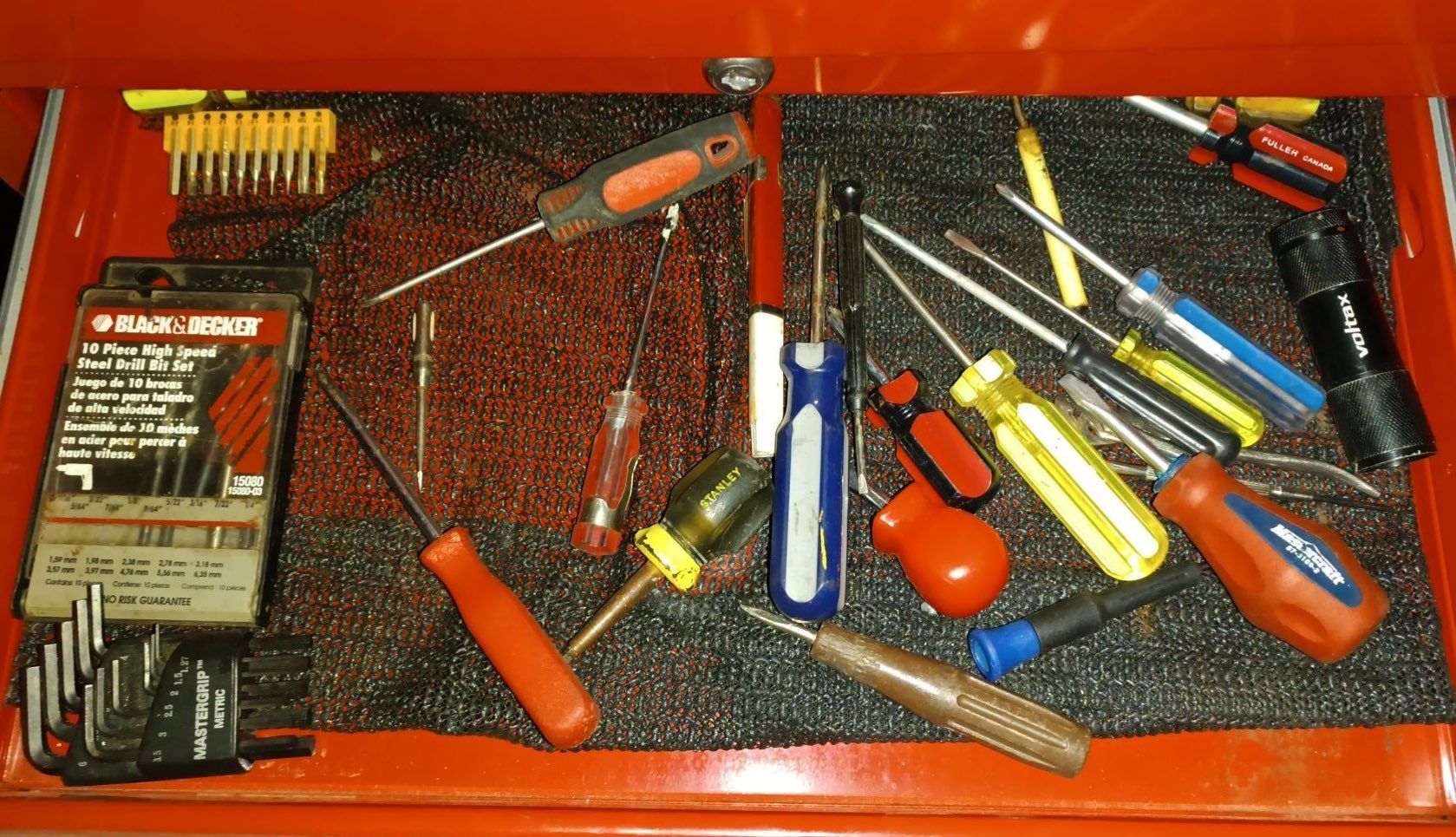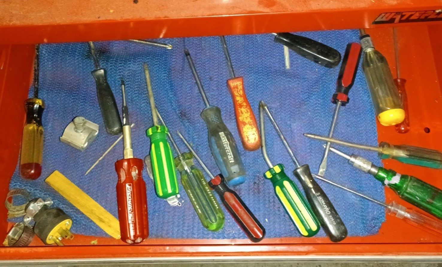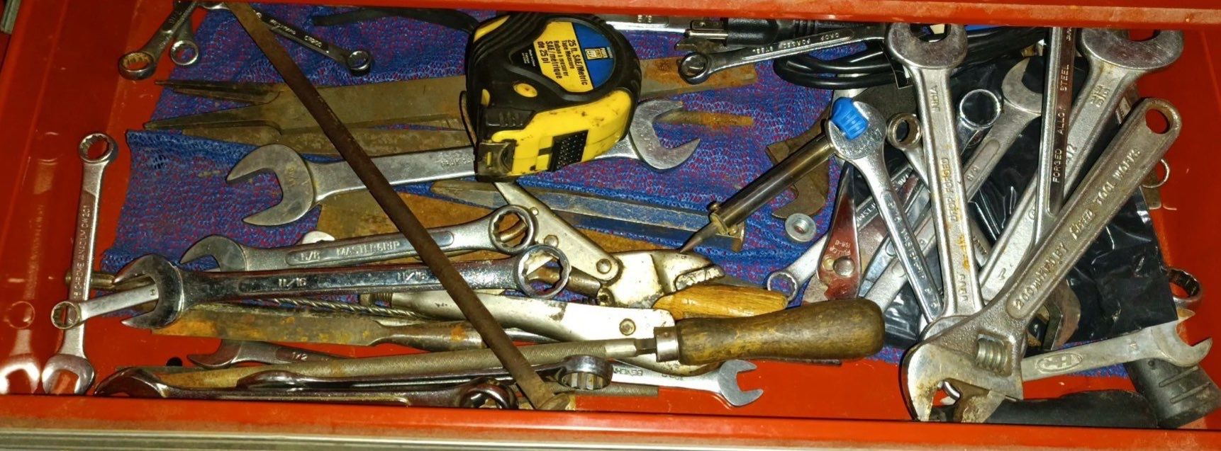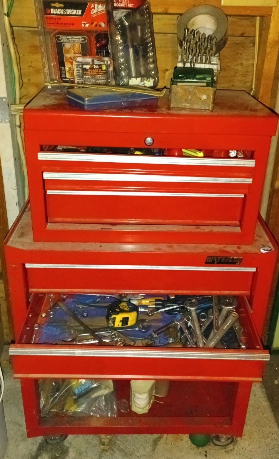 Large Double Stacked Red Tool Box On Wheels Full of Tools Screwdriver, Wrenches, & More