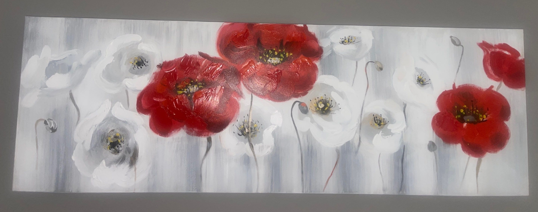 Large Floral Design Art - Oil on Canvas 59x19 Artist Unknown