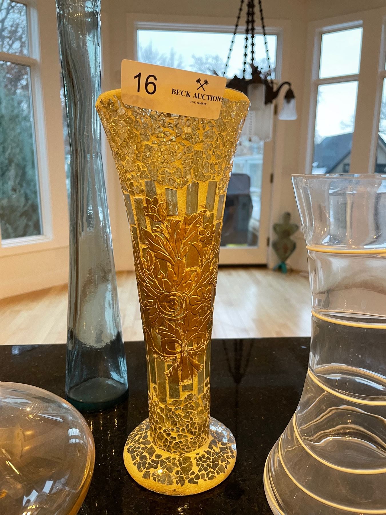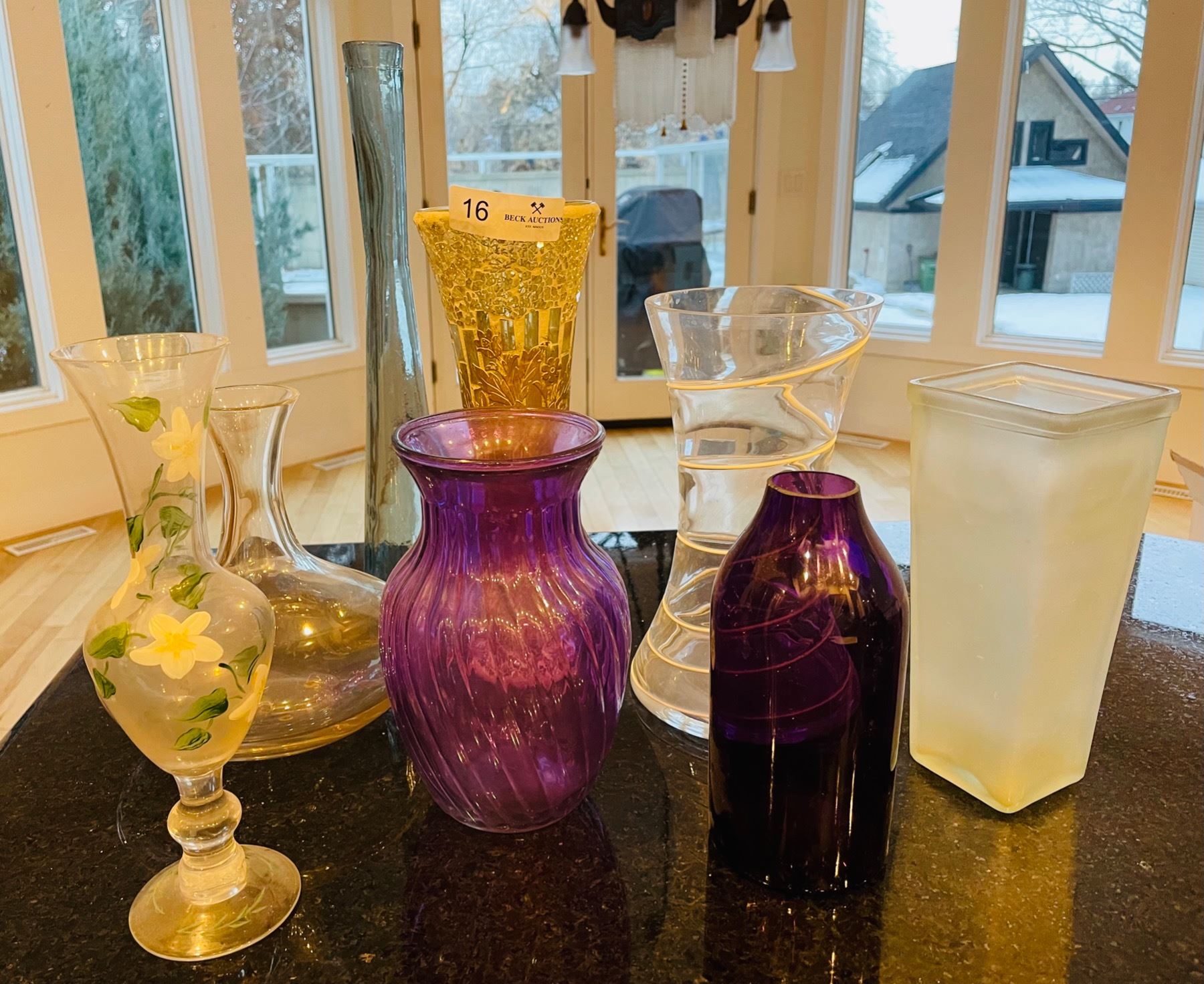 Large glass vase lot. A range of sales to display your flowers in! The white swirl vase has a chip.
