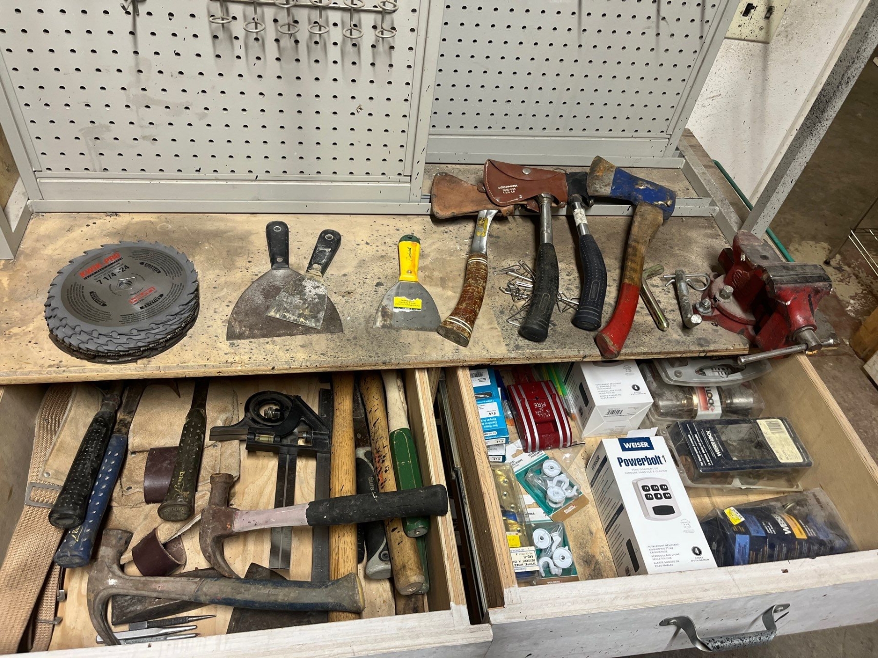 Large Lot Of New Saw Blades Hammers Axes Door Locks & Key Pad Door Locks
