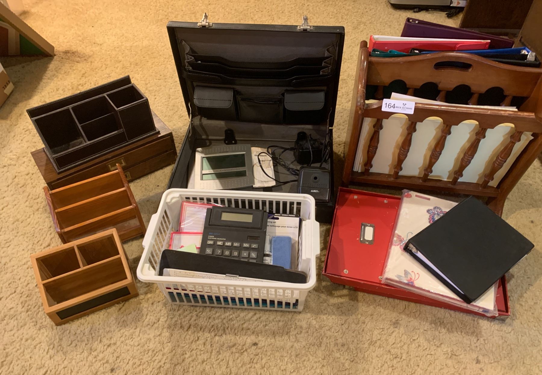 Large Lot of Good Condition Office Supplies, Briefcase, Organizers, and Magazine Holder