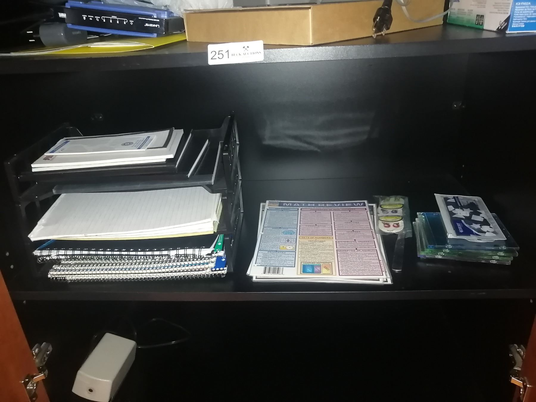 Including envelopes, many staples, stapler hole punchers, sticky notes, markers, calculators, craft scissors, geometry sets, and more!