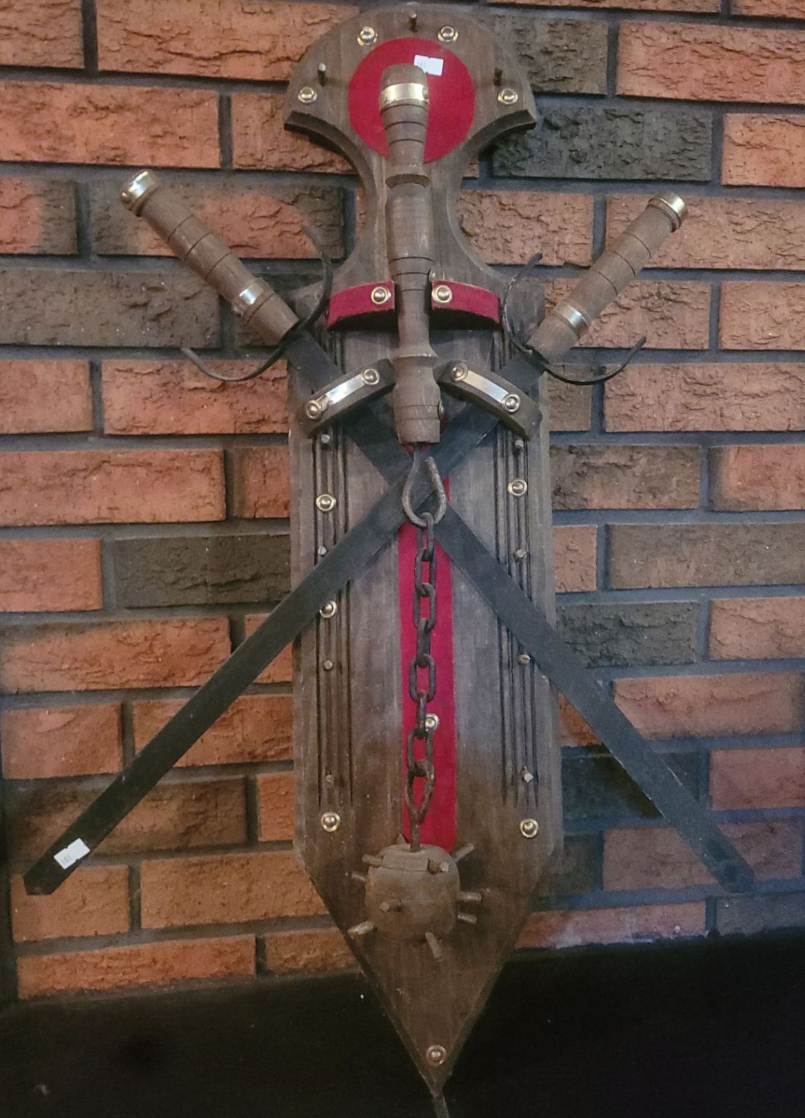 Large Medieval Decorative Metal Blades + Morning Star Weapon on Plaque -  32T