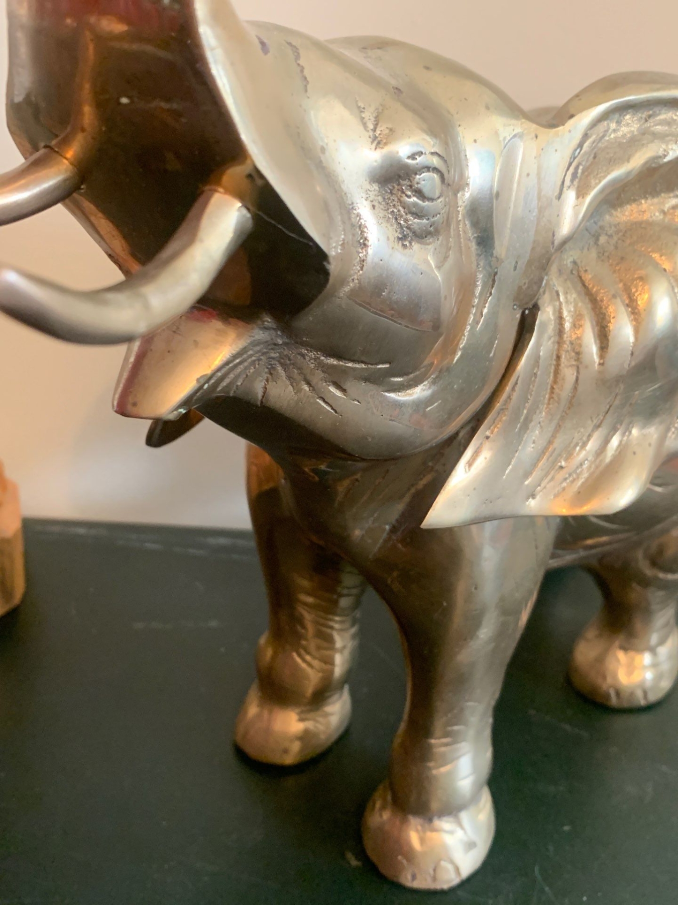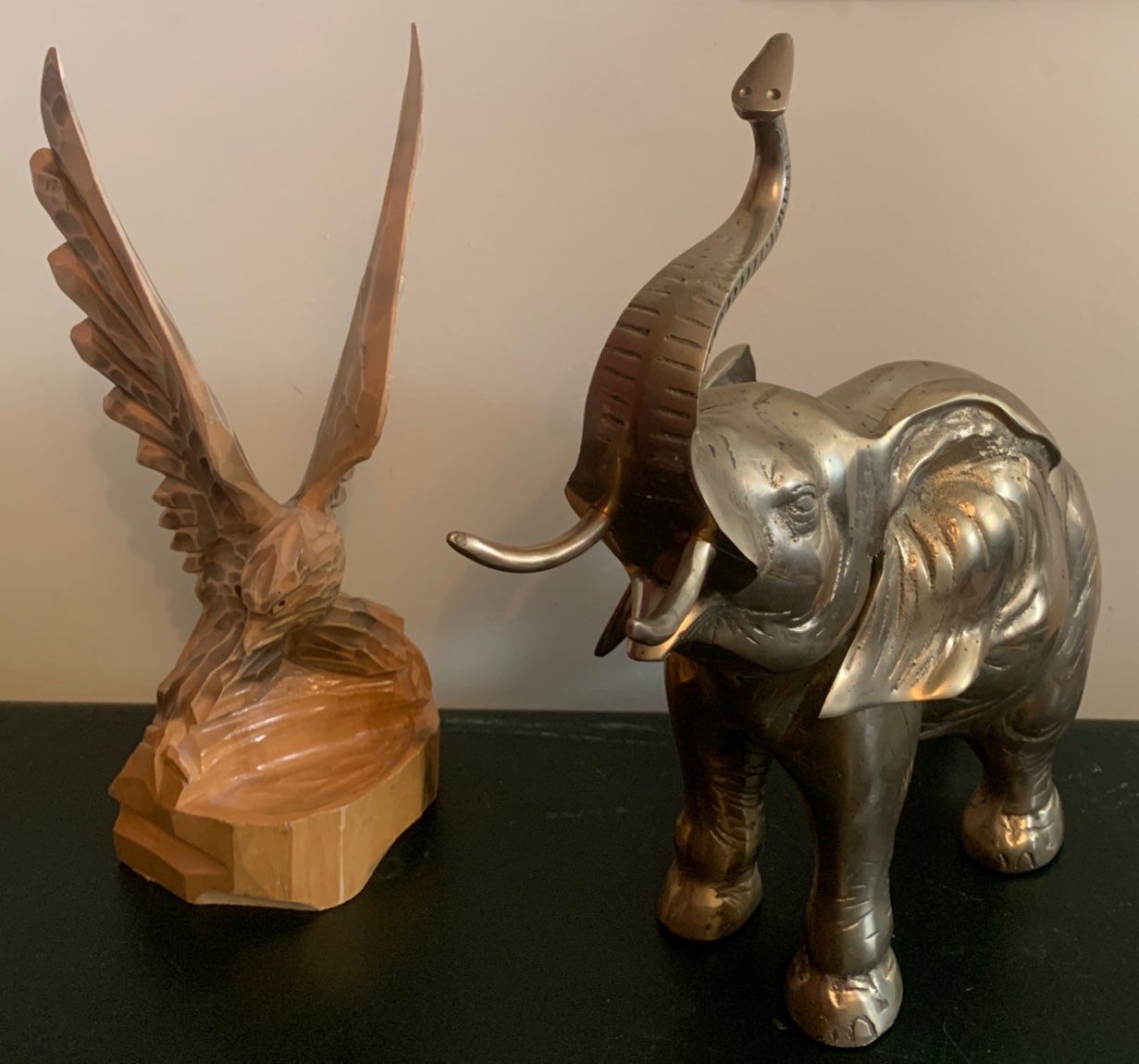 Large Solid Brass Elephant 17T w/ Hand Carved Bald Eagle
