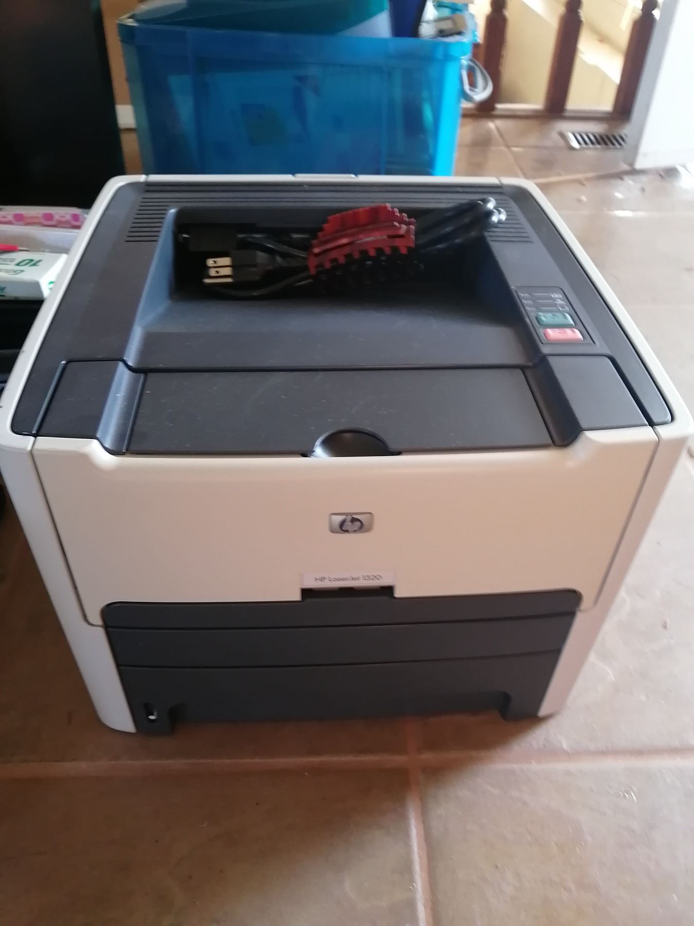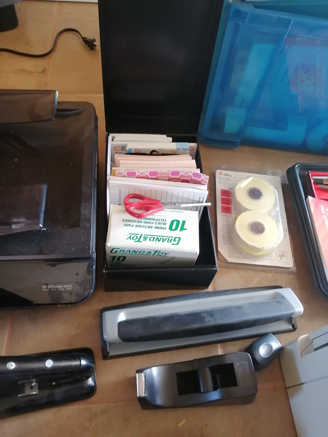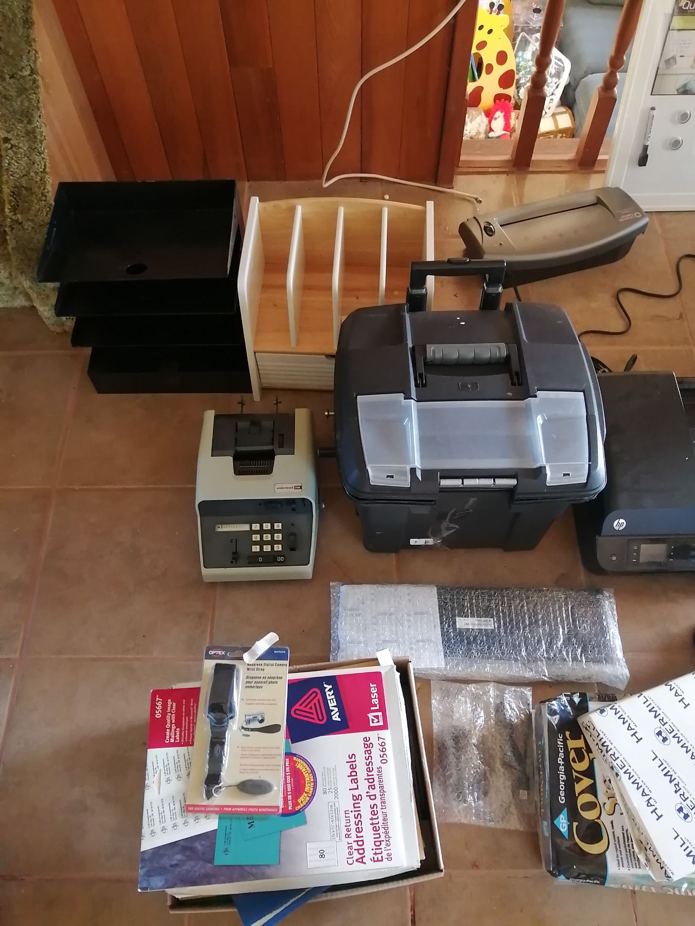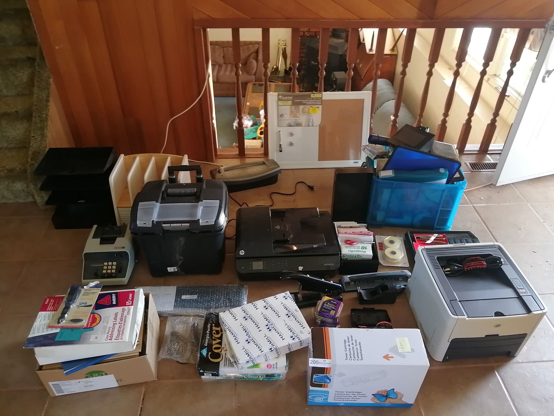Includes: HP Laserjet 1320, HP Officejet 4360, keyboard, mouse, file organizers, printer paper, stationary, and more!