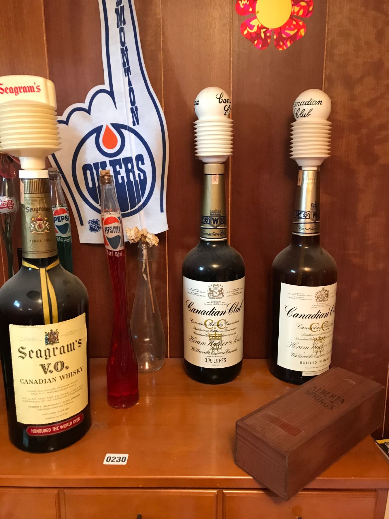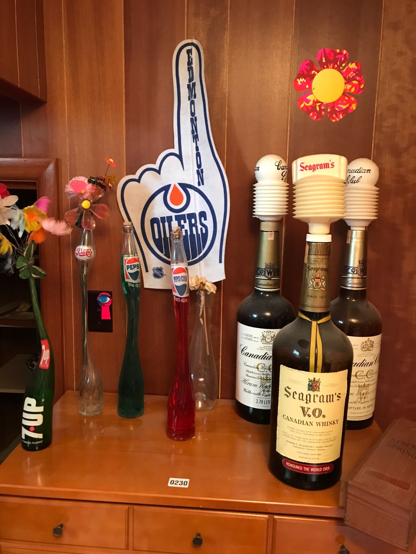 Large Swirl Z.UP & Coca-Cola Bottles & Huge Empty Whisky Bottles & Oiler's Banner