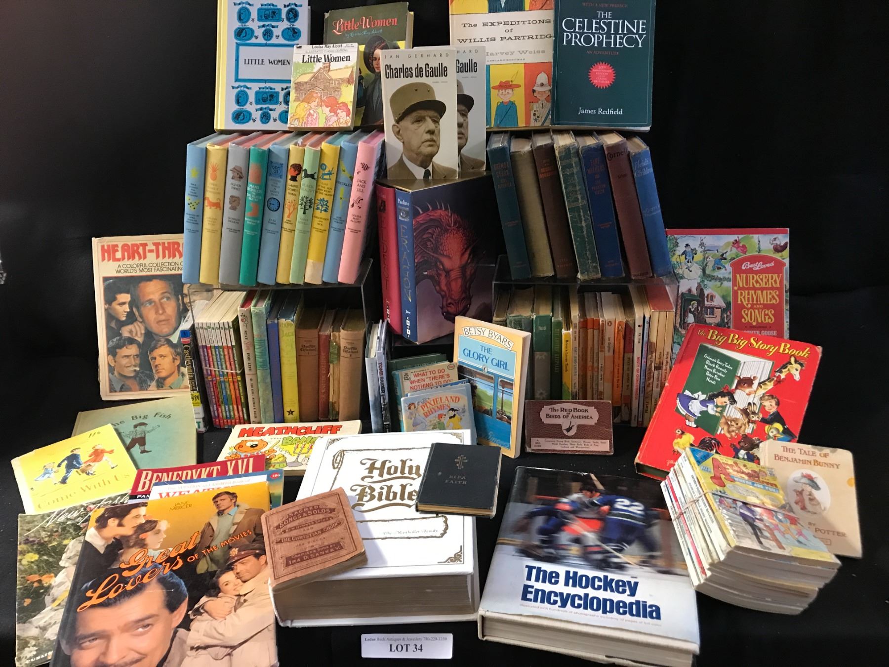 Large Variety of Comics & Books incl Archie, Holy Bible, Hockey Encyclopedia, Little Women, Charles de Gaulle, The Celstine Prophecy, Paolini Eragon Dragon Book Set etc