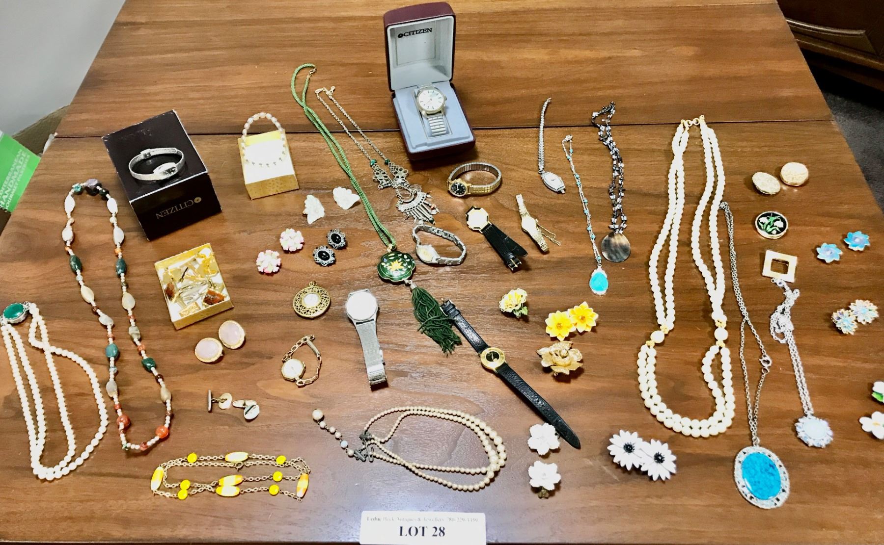Large Variety of Watches incl Cardinal, asst Cuff Links, Faux Pearl Necklaces, Vintage Earrings, Necklaces, & Brooches