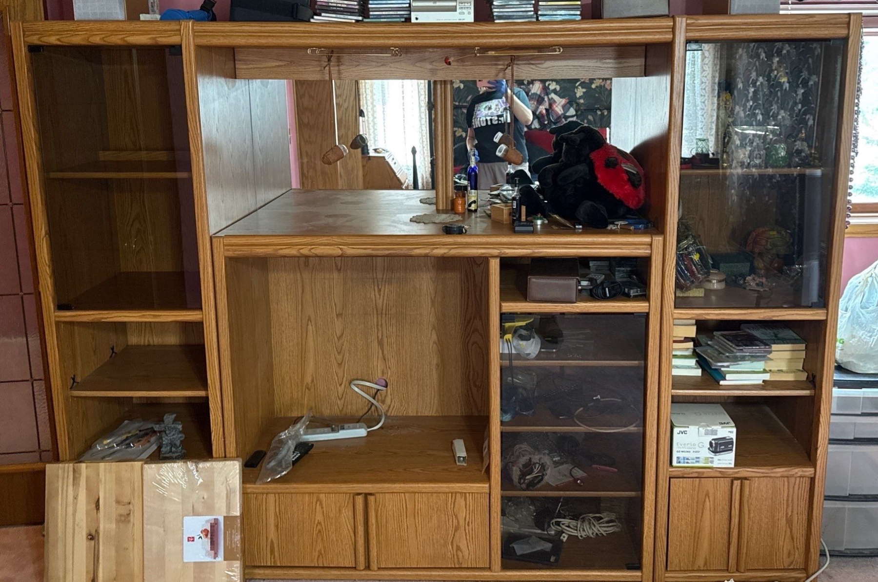 Large Wood Entertainment Unit, Contents NOT Incl., Bring Help, 96W, 21D, 71T