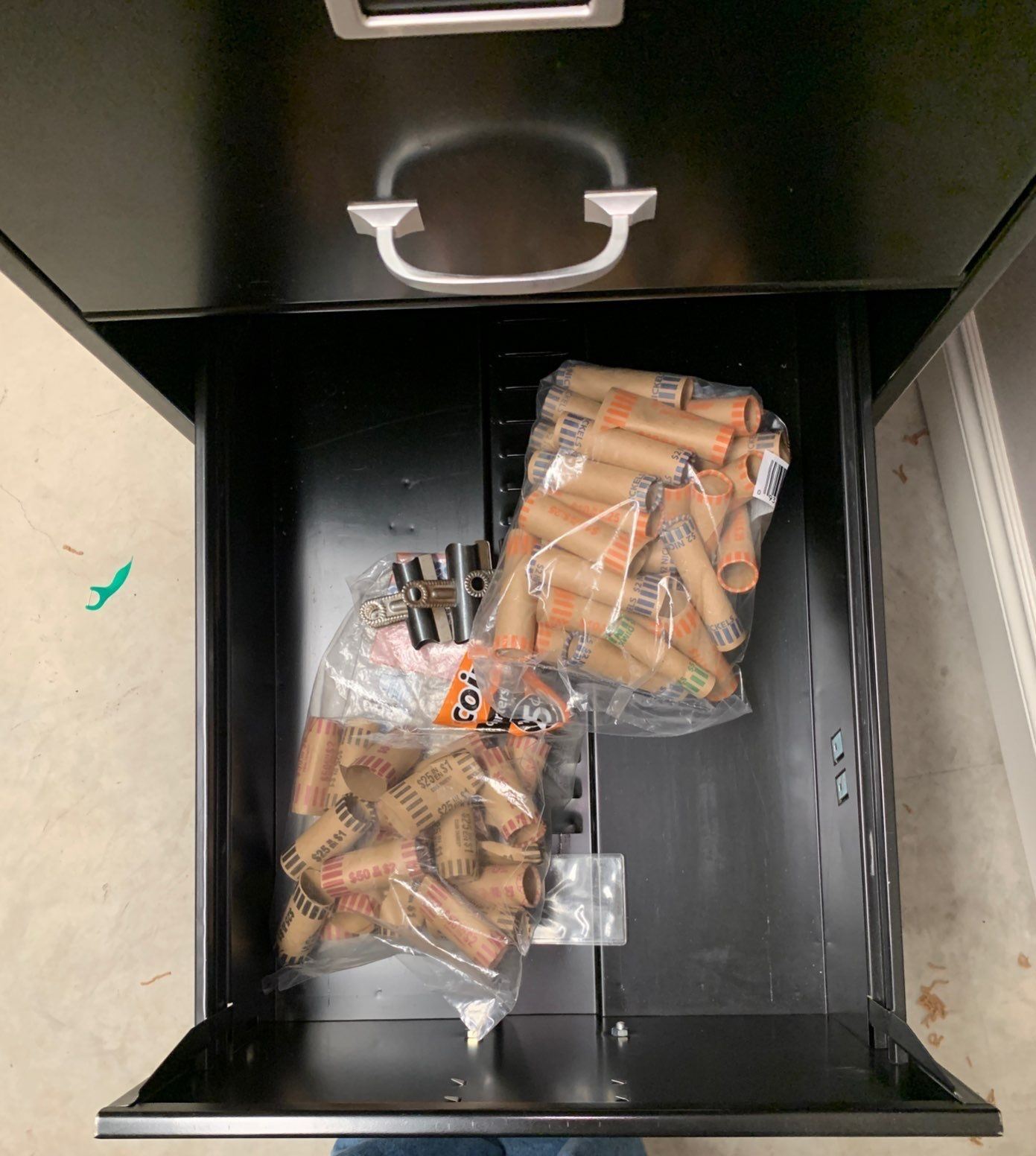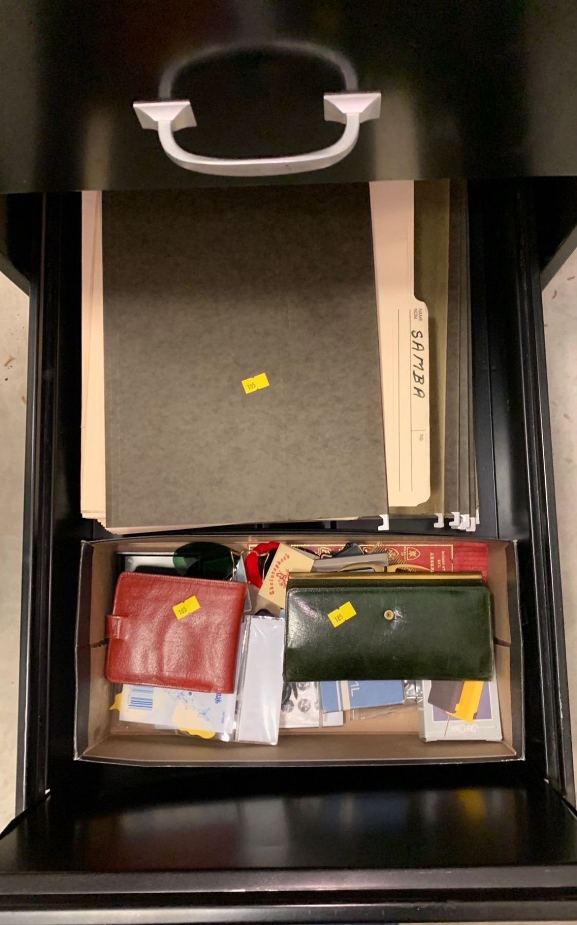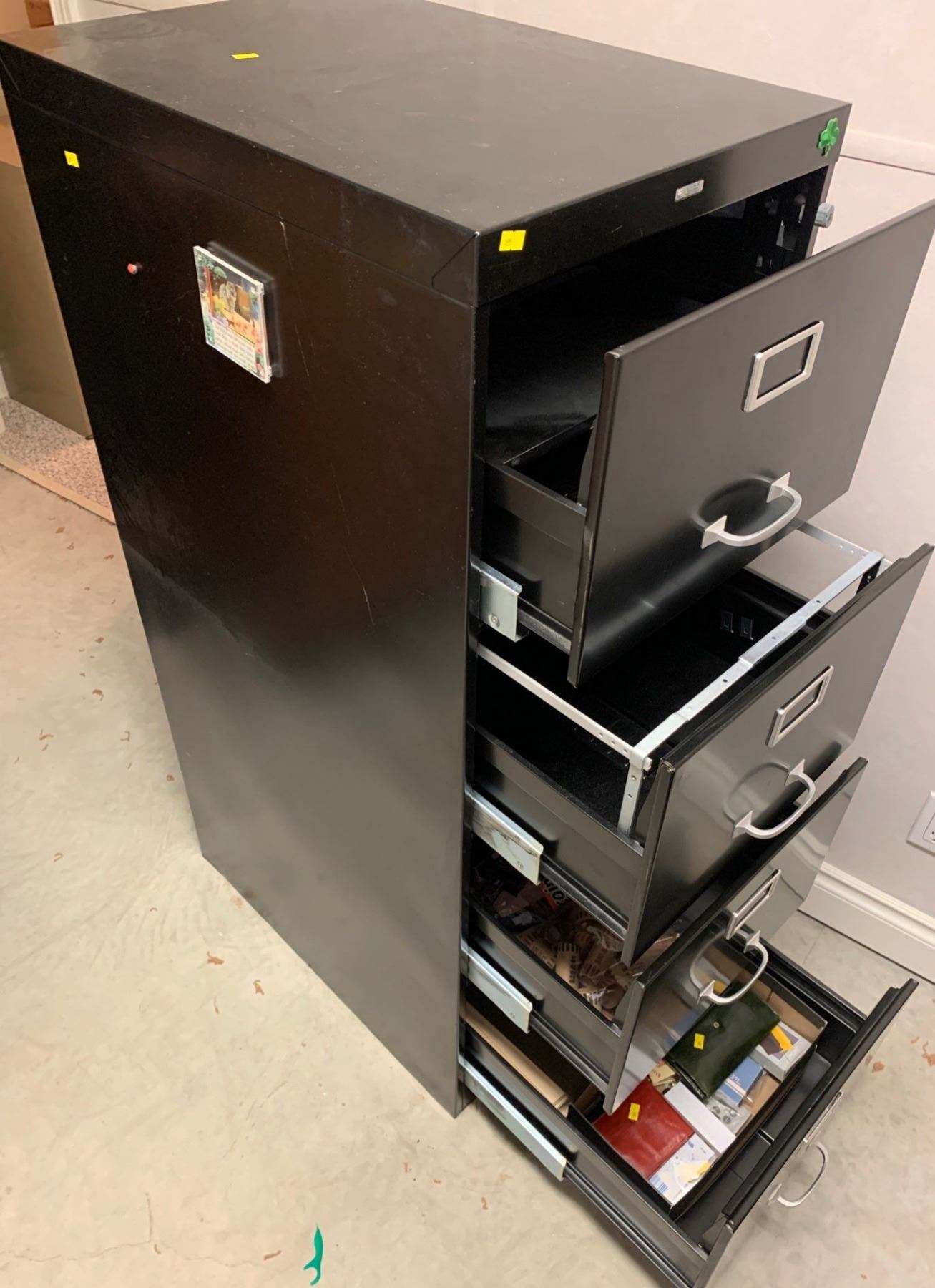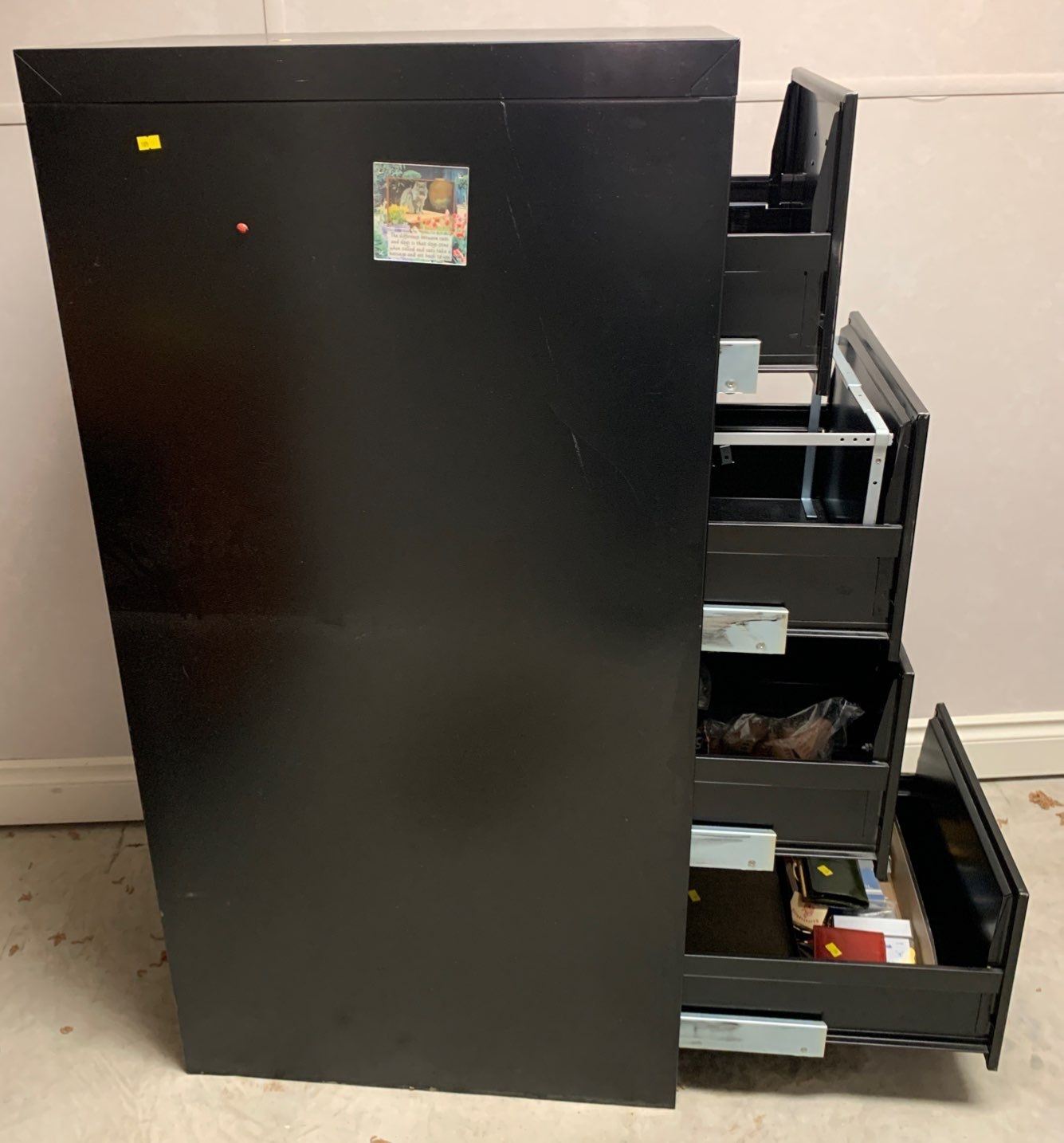 Large black file cabinet; works, has a set of 3 keys; office contents included; 18W, 27D, 52T