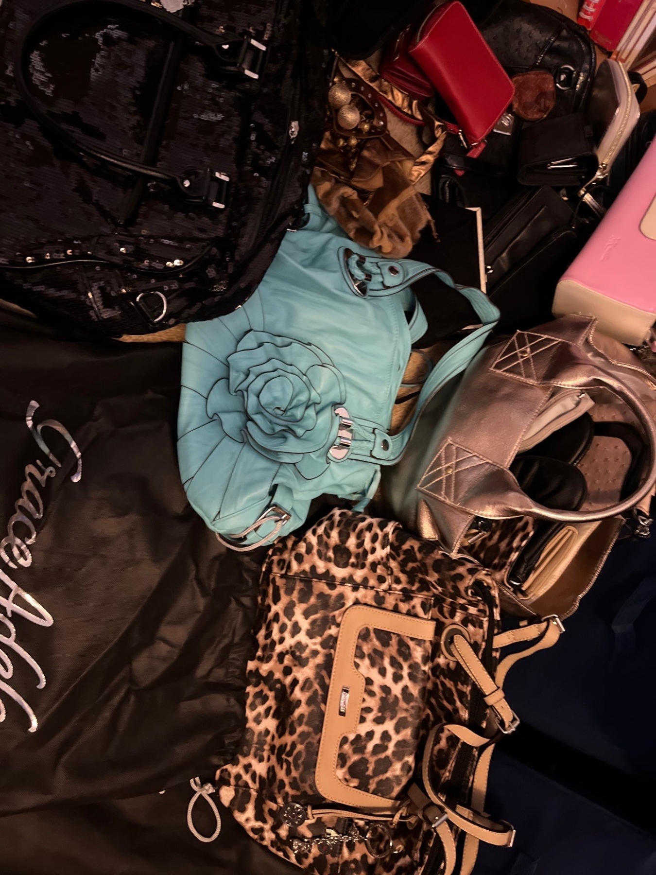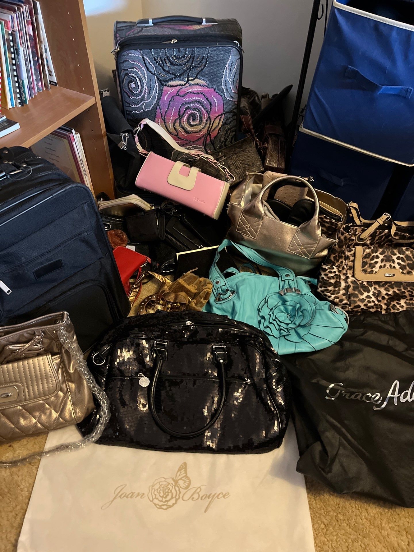 Large collection of new and used handbags, suitcases, wallets, and purses